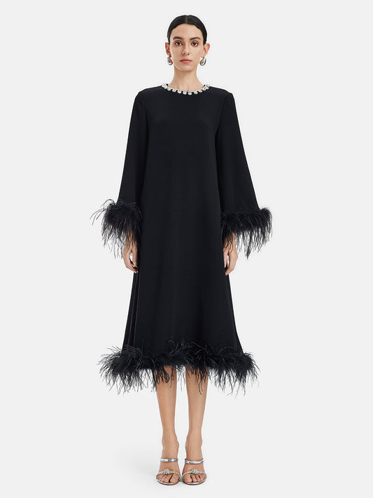 Siyah Tüy Kesimli Lüks Elbise