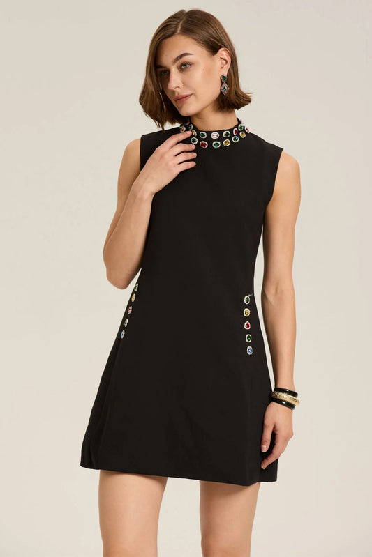 Fella Boyundan Bağlamalı Taşlı Mini Elbise