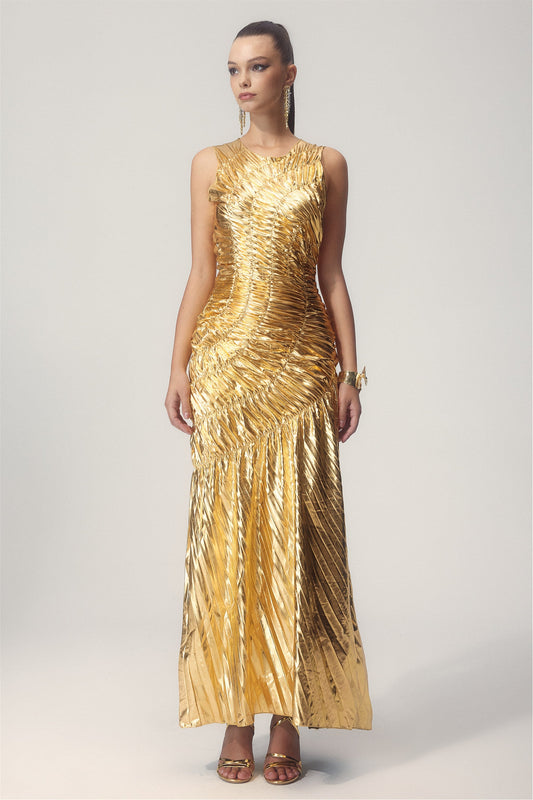 20% İndirimSilla Metalik Pileli Midi Elbise