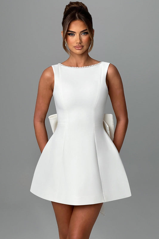 17% İndirimCecila Fiyonklu İncili Sırtı Açık Mini Elbise