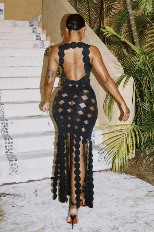Geraldine Boyundan Bağlamalı Sırtı Açık Payet Maxi Elbise