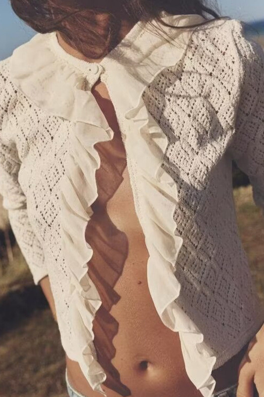 28% İndirimKatlı Fırfırlı Triko Hırka