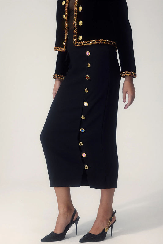 21% İndirimElla Gem Düğmeli Kalem Midi Etek