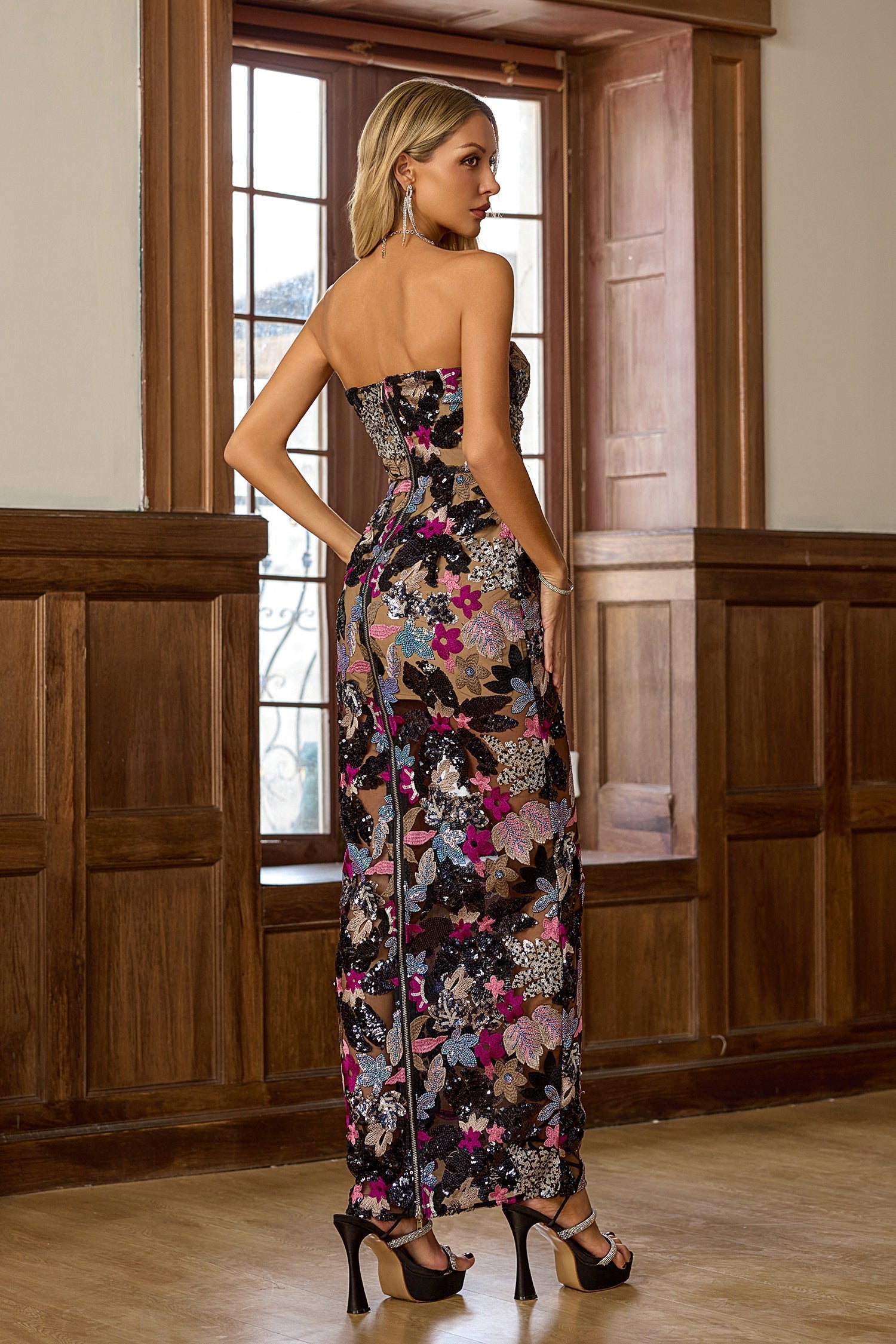 Leanna Koyu Mor Çiçek İşlemeli Maxi Elbise