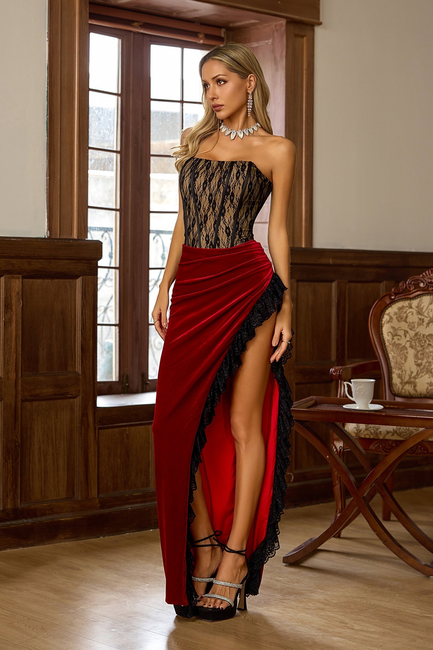 Beril Siyah Ve Kırmızı Maxi Elbise