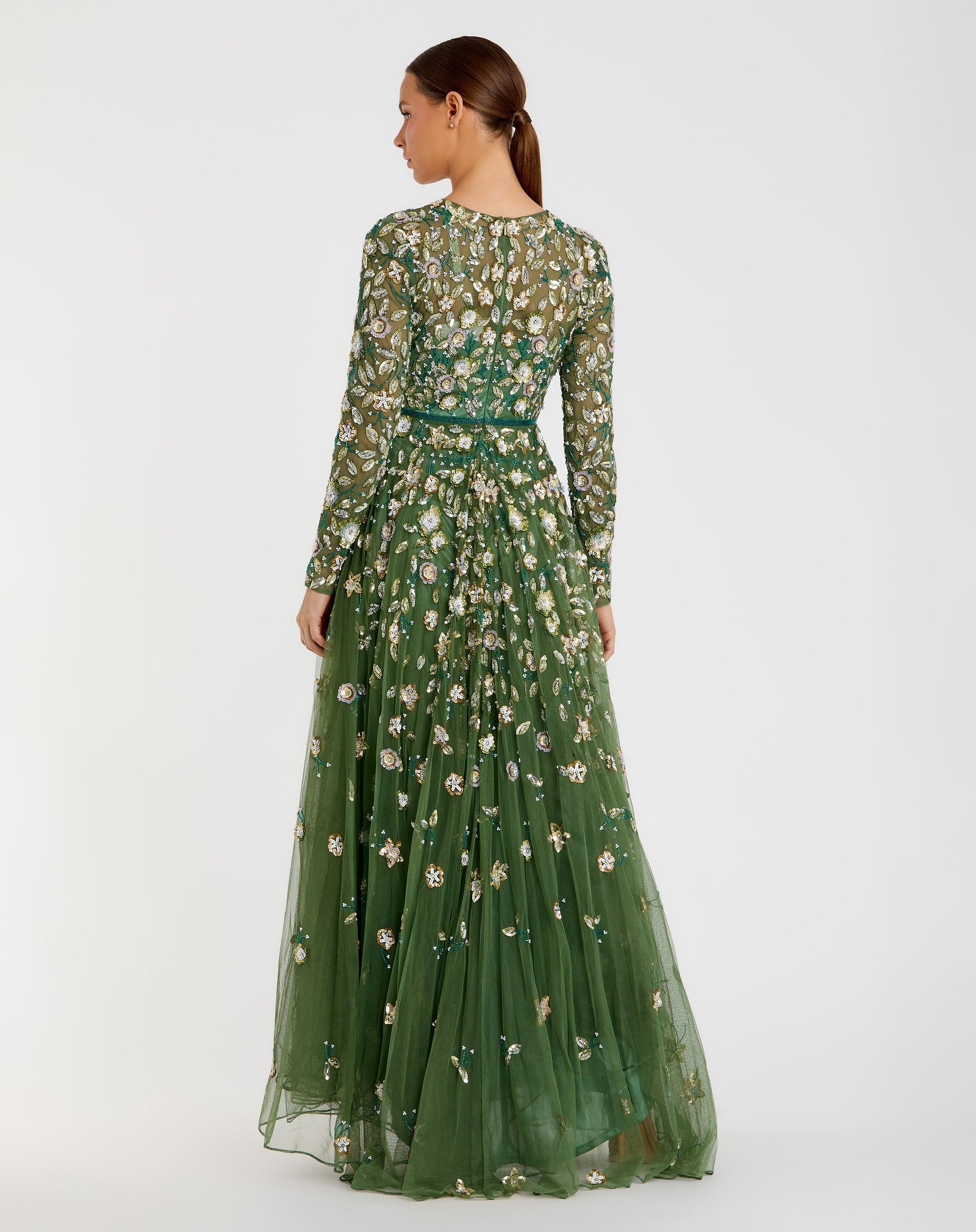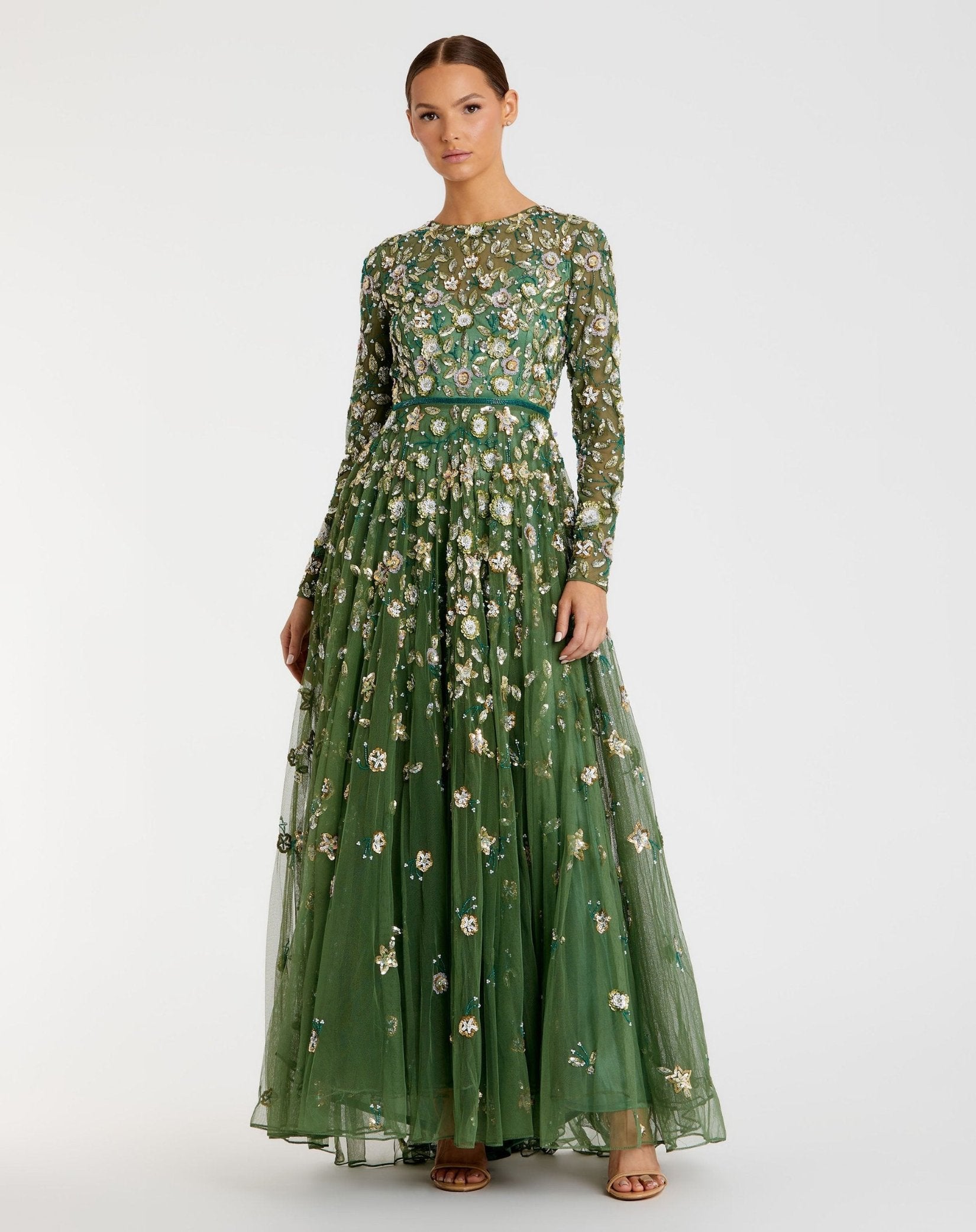 Alevna™ Yeşil İşlemeli Yüksek Yaka Uzun Kollu A Kesim