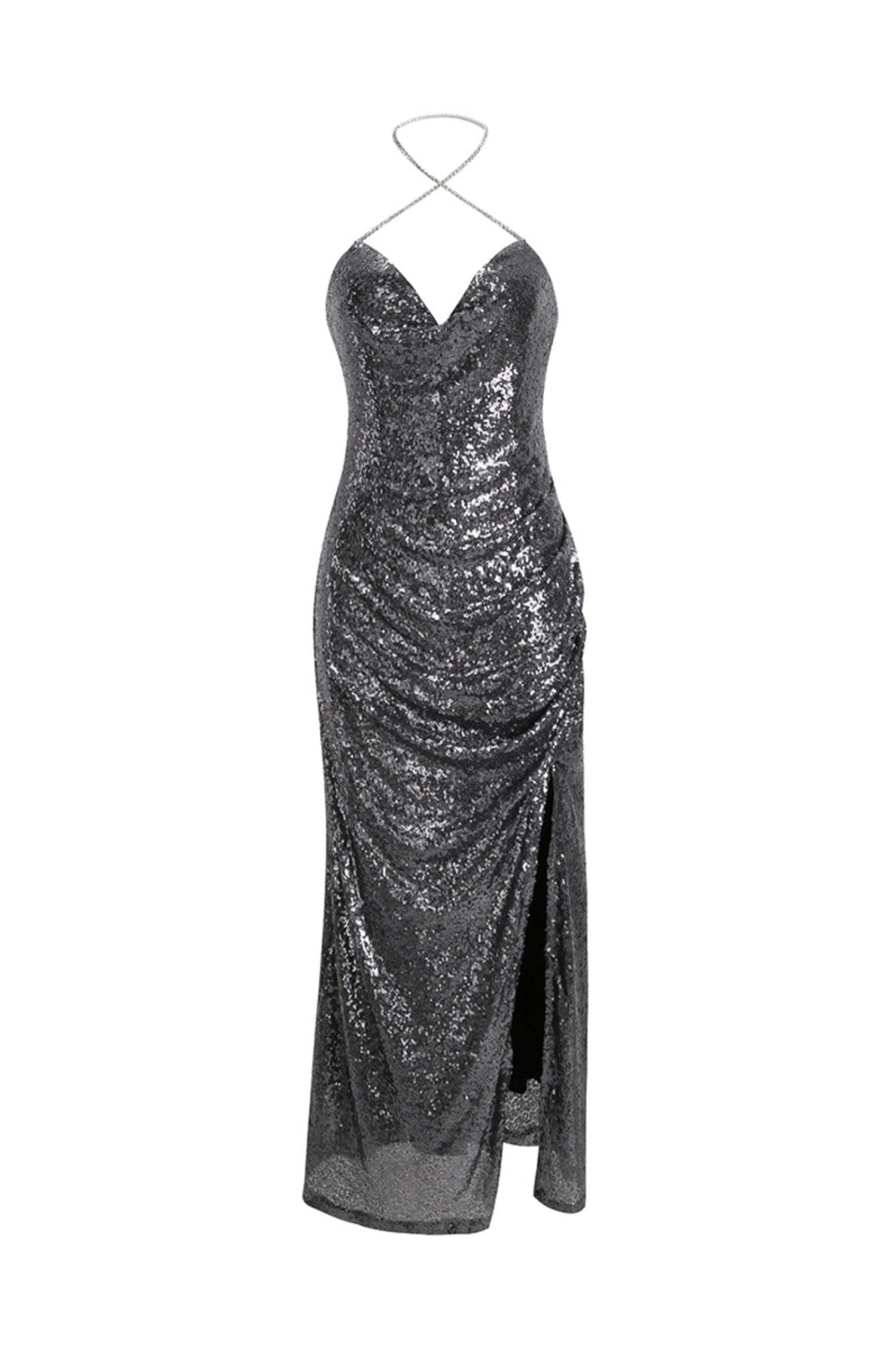 Afra Diamant Boyundan Bağlamalı Midi Payet Elbise