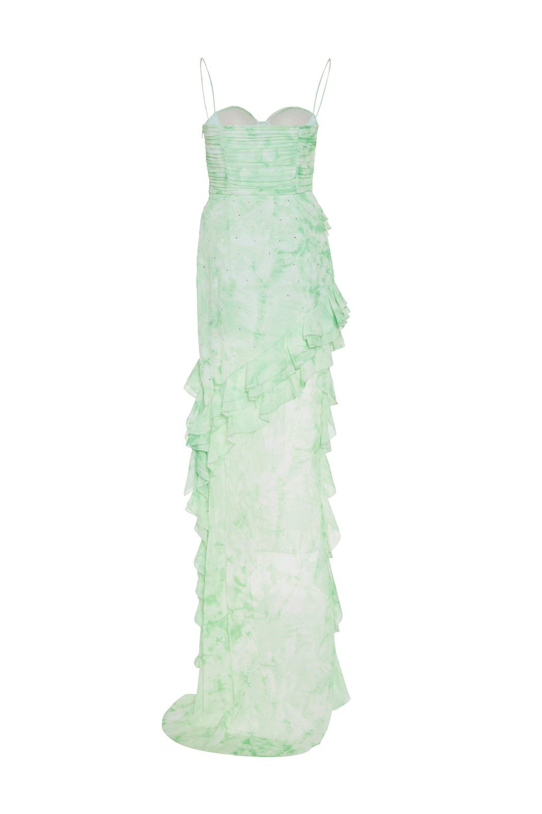 Afra Baskılı Fırfırlı Asimetri Mini Şifon Slip Elbise