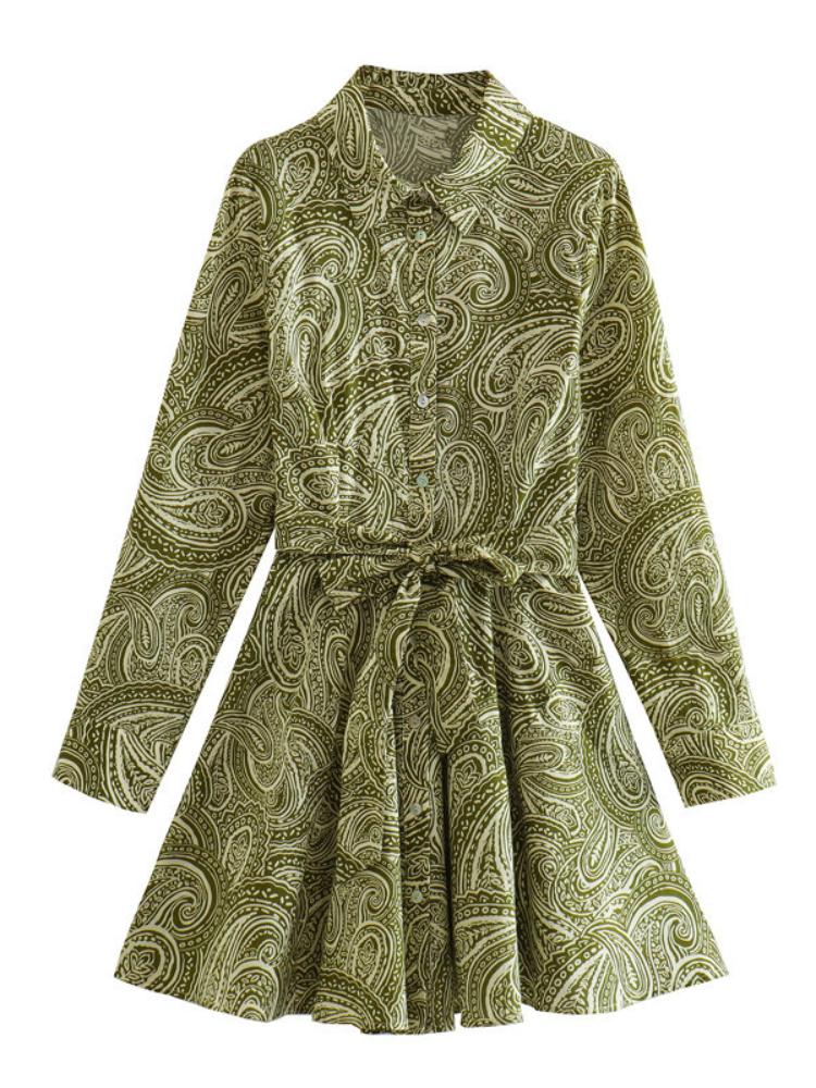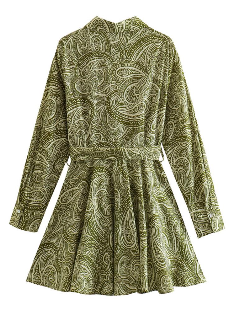 Agnes Paisley Desenli Kuşaklı Mini Gömlek Elbise