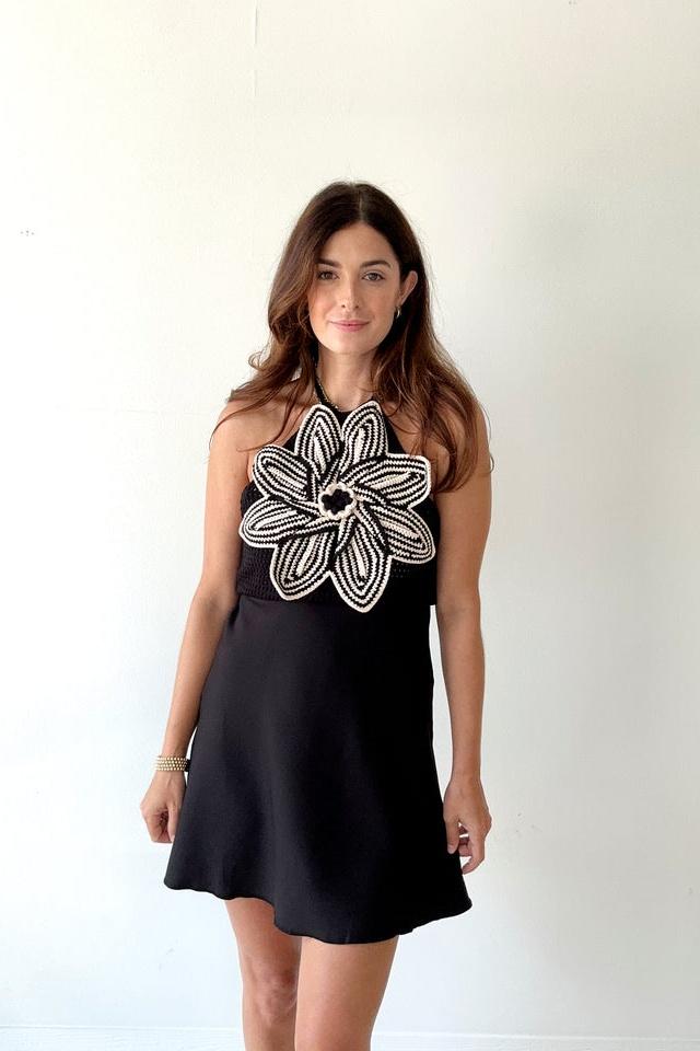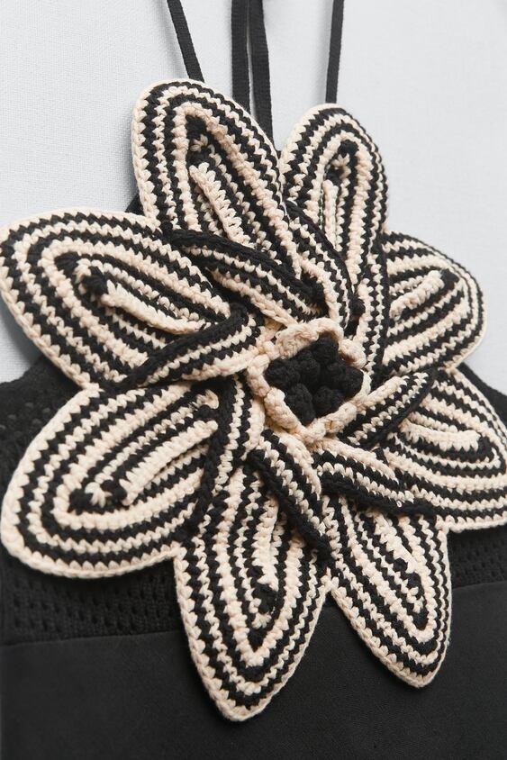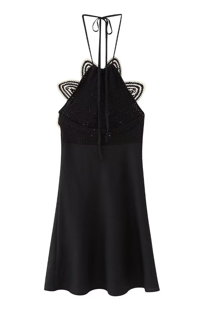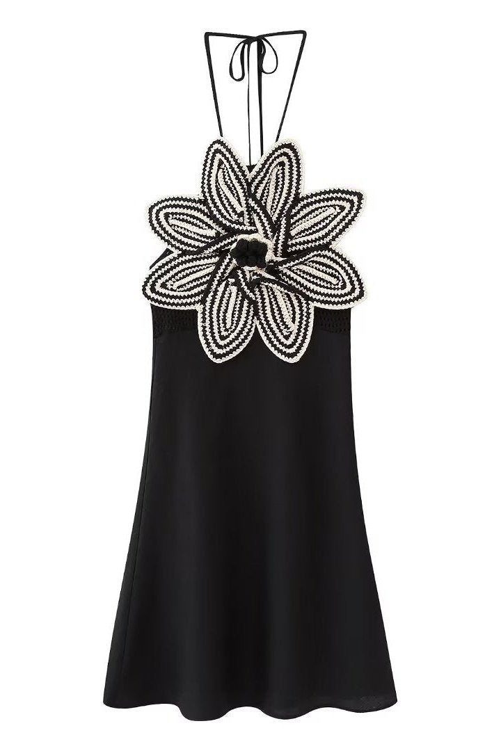 Alda Çiçek Tığ İşi Boyundan Bağlı Mini Elbise