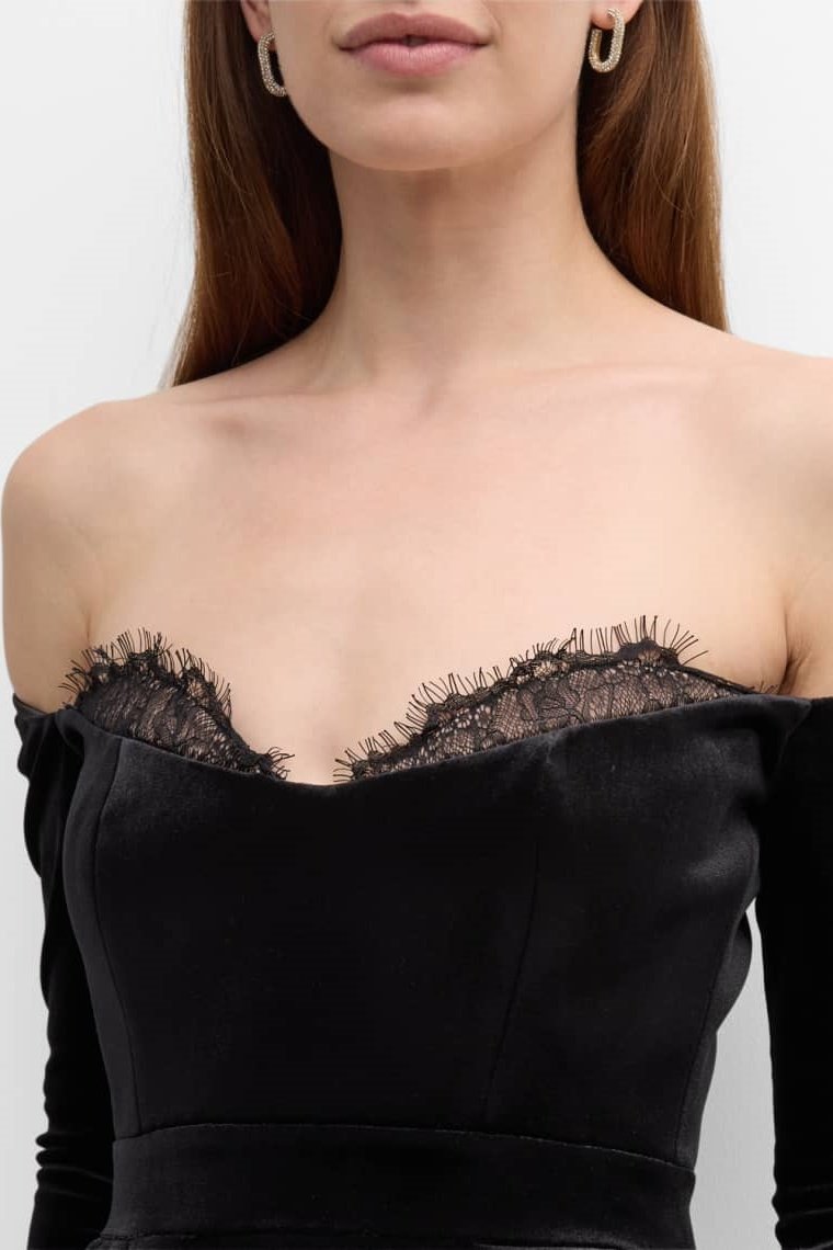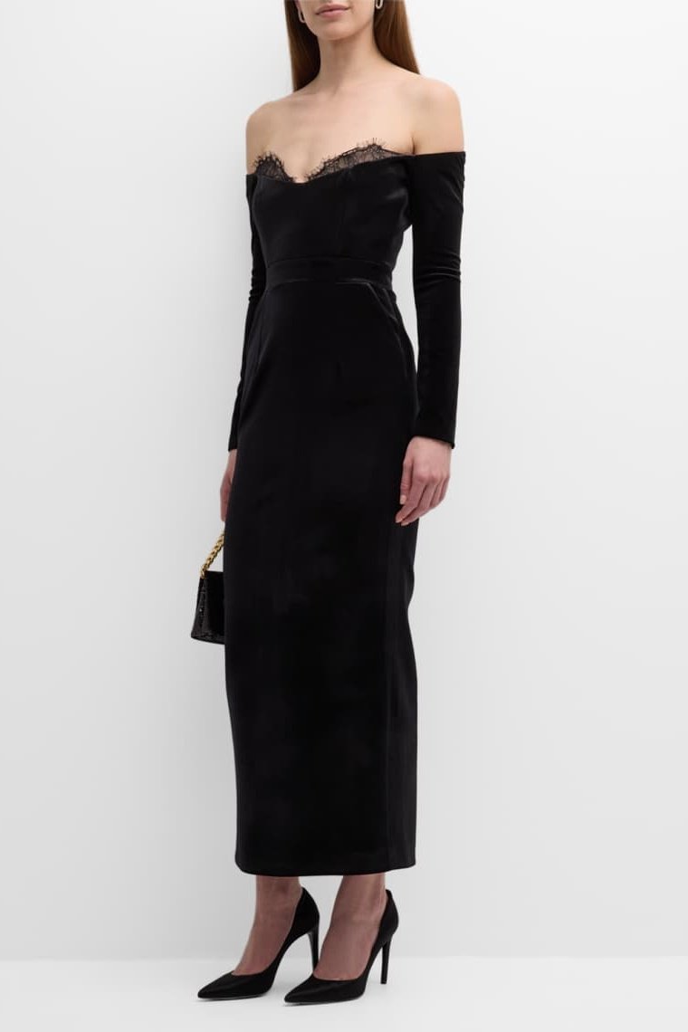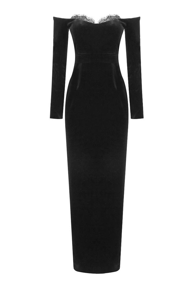 Alexandra Düşük Omuzlu Dantelli Maxi Elbise