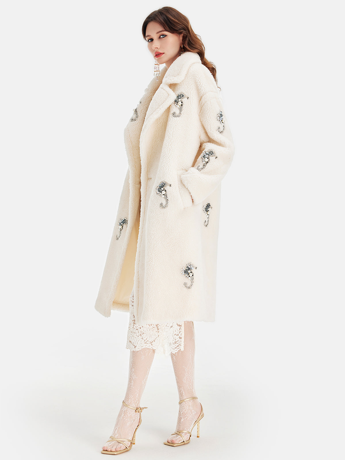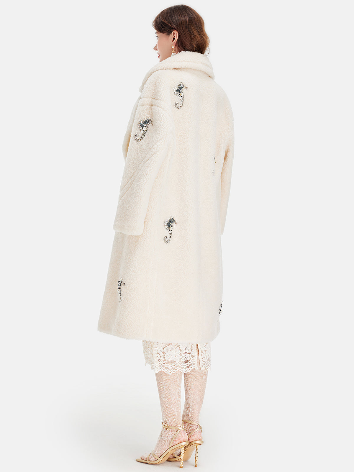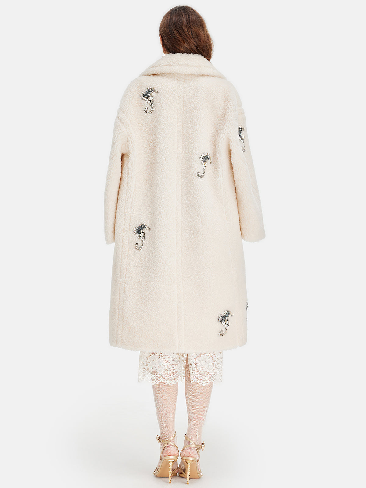 Alpaka Yünü Boncuklu Uzun Kaban