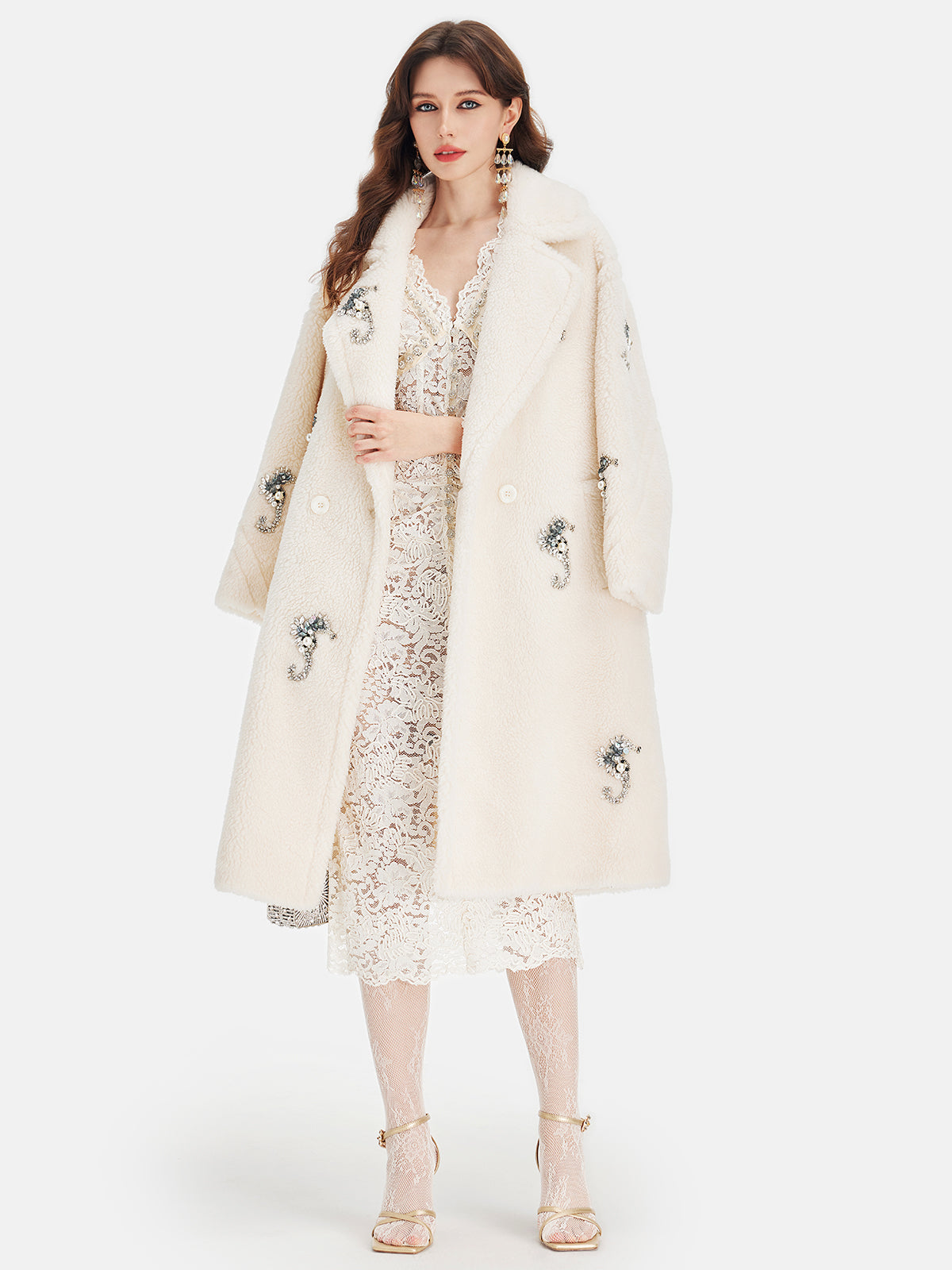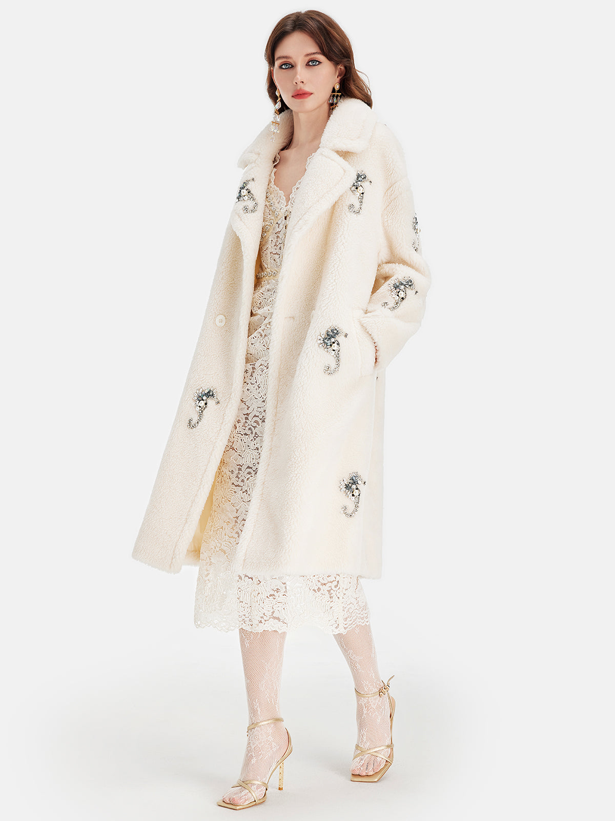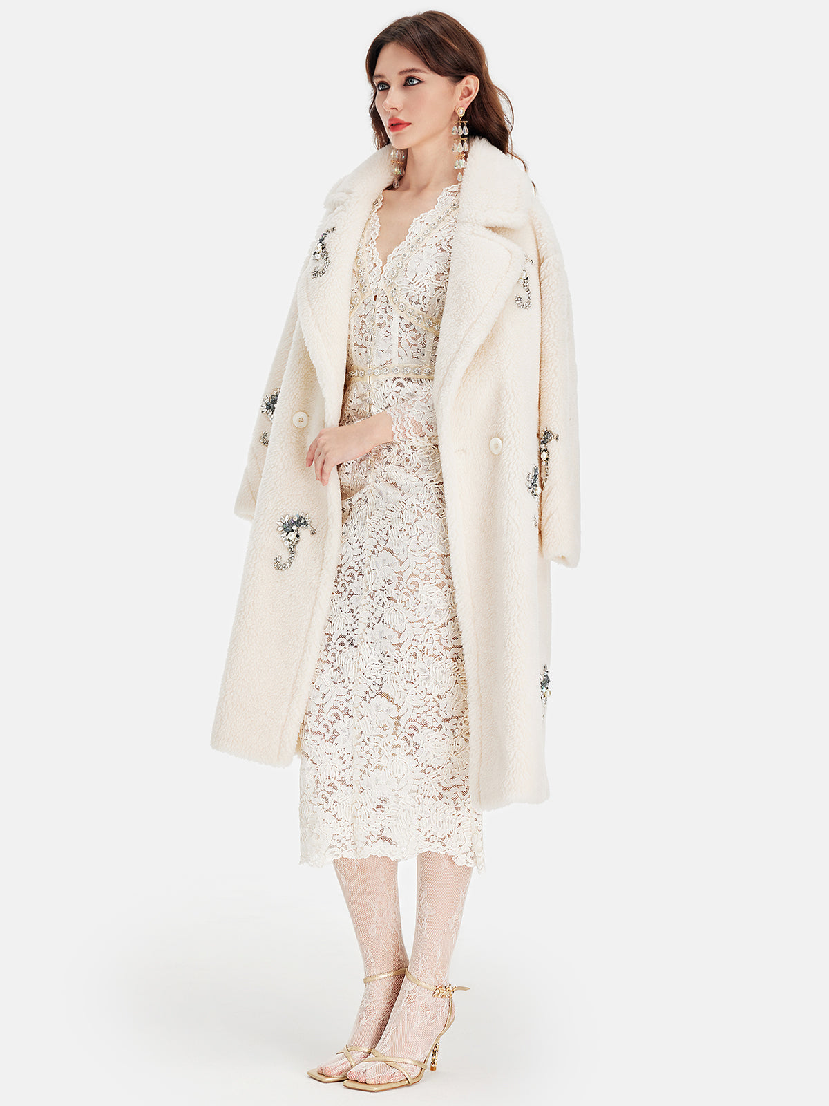 Alpaka Yünü Boncuklu Uzun Kaban