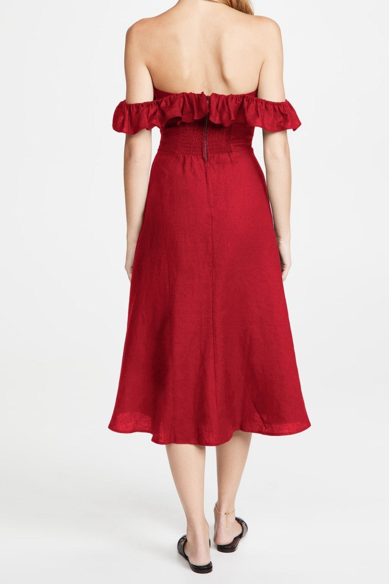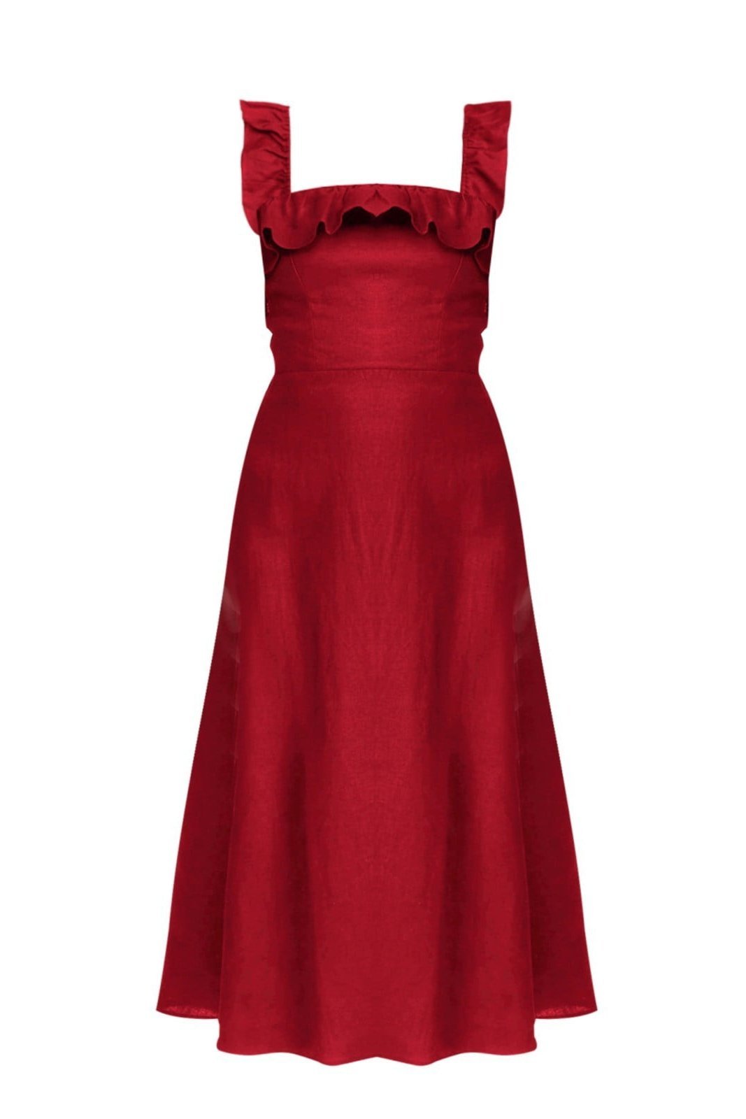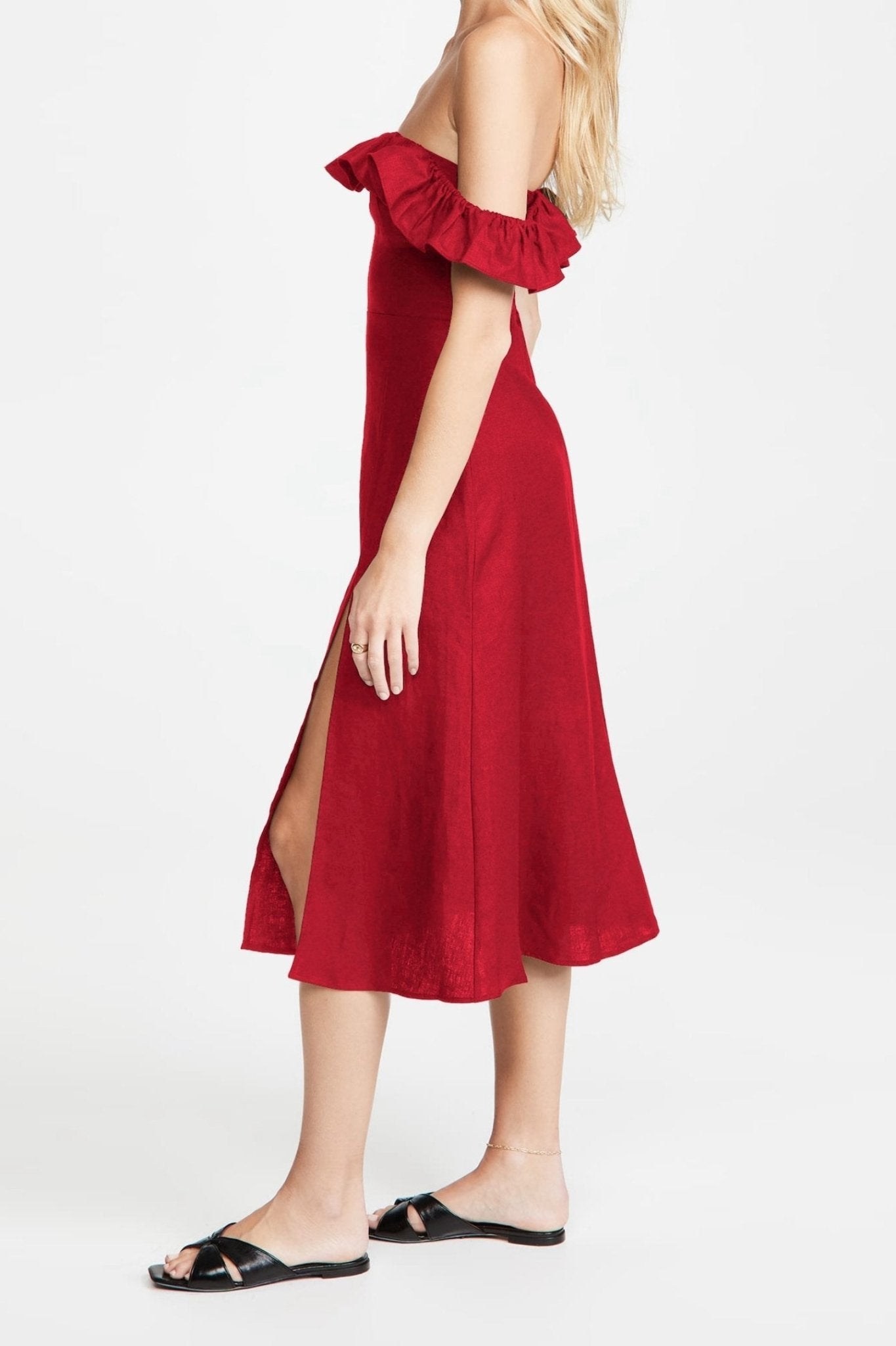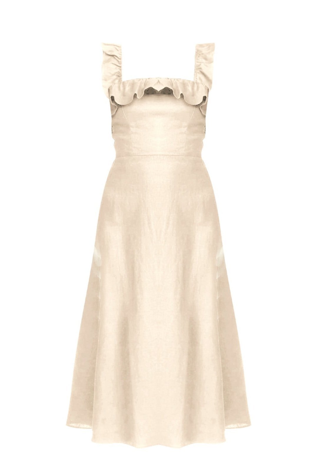 Alyss Fırfırlı Askılı Yırtmaçlı Midi Elbise
