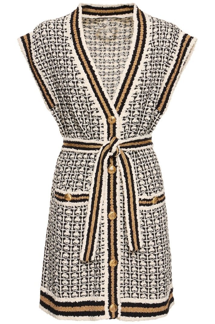 Alyssa Kontrast Kuşaklı Örme Yelek Hırka