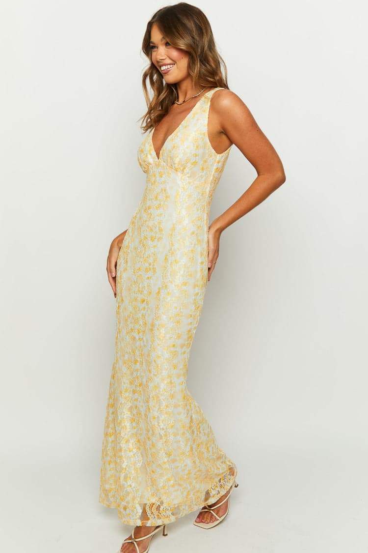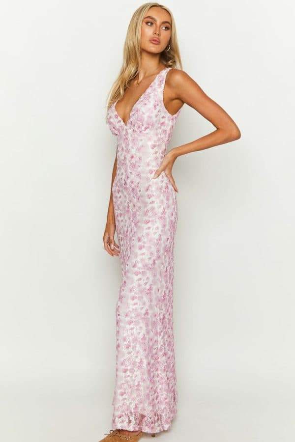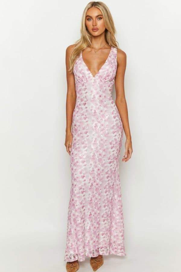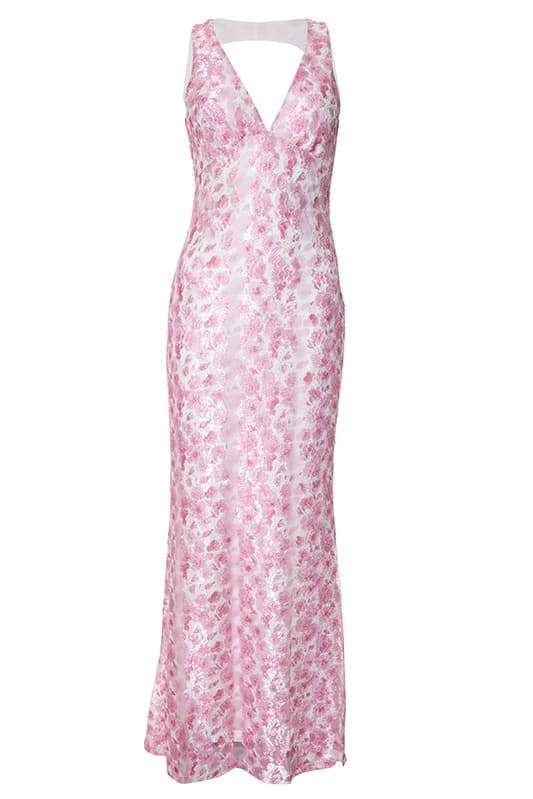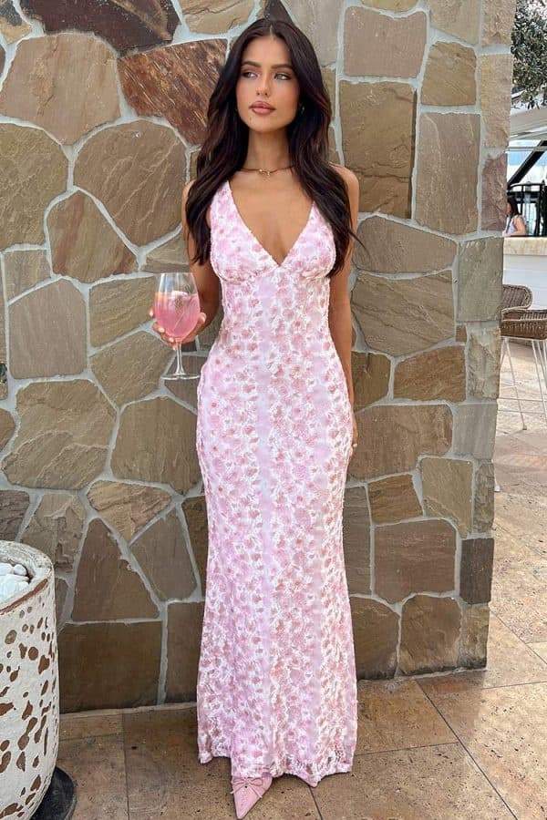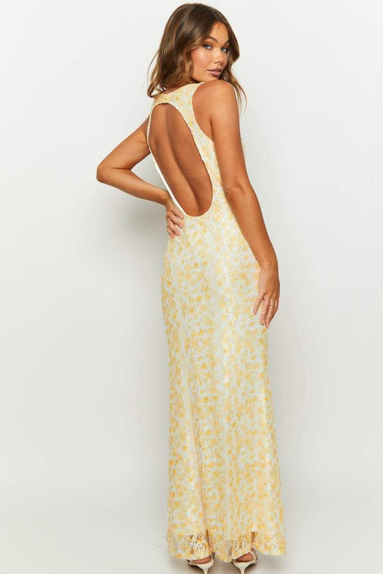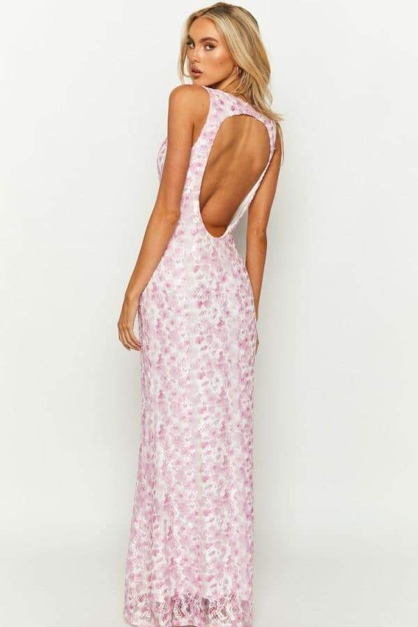 Amelia İşlemeli Dantelli Sırtı Açık Uzun Elbise