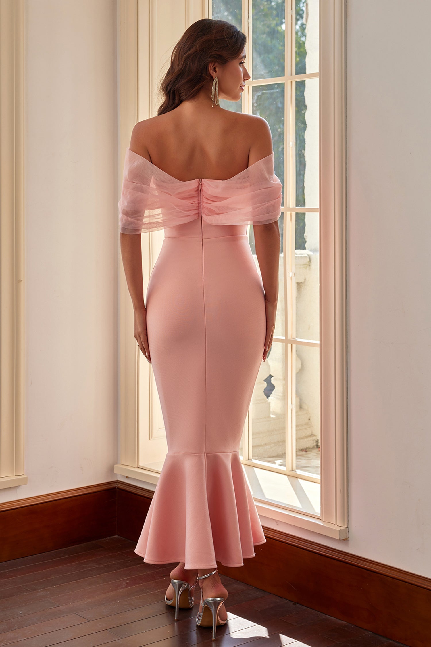 Aneta Pembe Omuzu Açık Deniz Kızı Midi Elbise