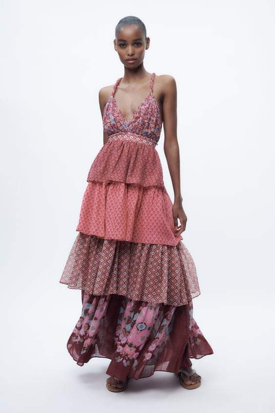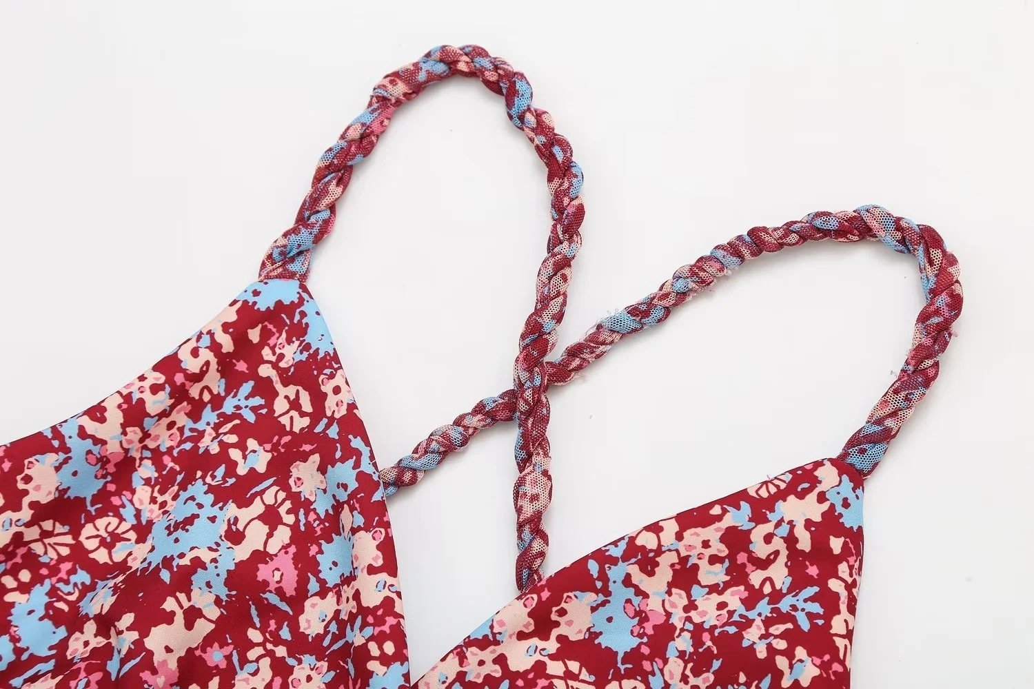 Ann Baskılı Çapraz Askılı Maxi Elbise