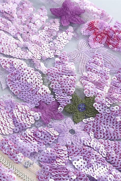 Aurora Çiçek İşlemeli Straplez Uzun Elbise