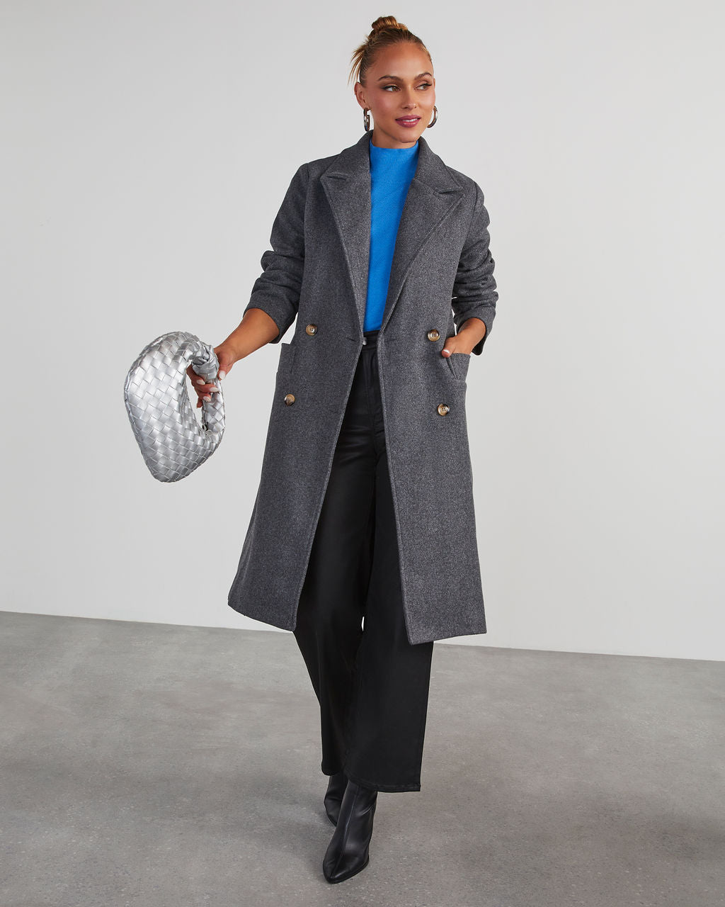Koyu gri renkteki Autumn Necessities Cepli Kaban ile dış giyim stilinizi yükseltin. Ön cepleriyle hem şık hem de kullanışlı bir seçenek sunar.