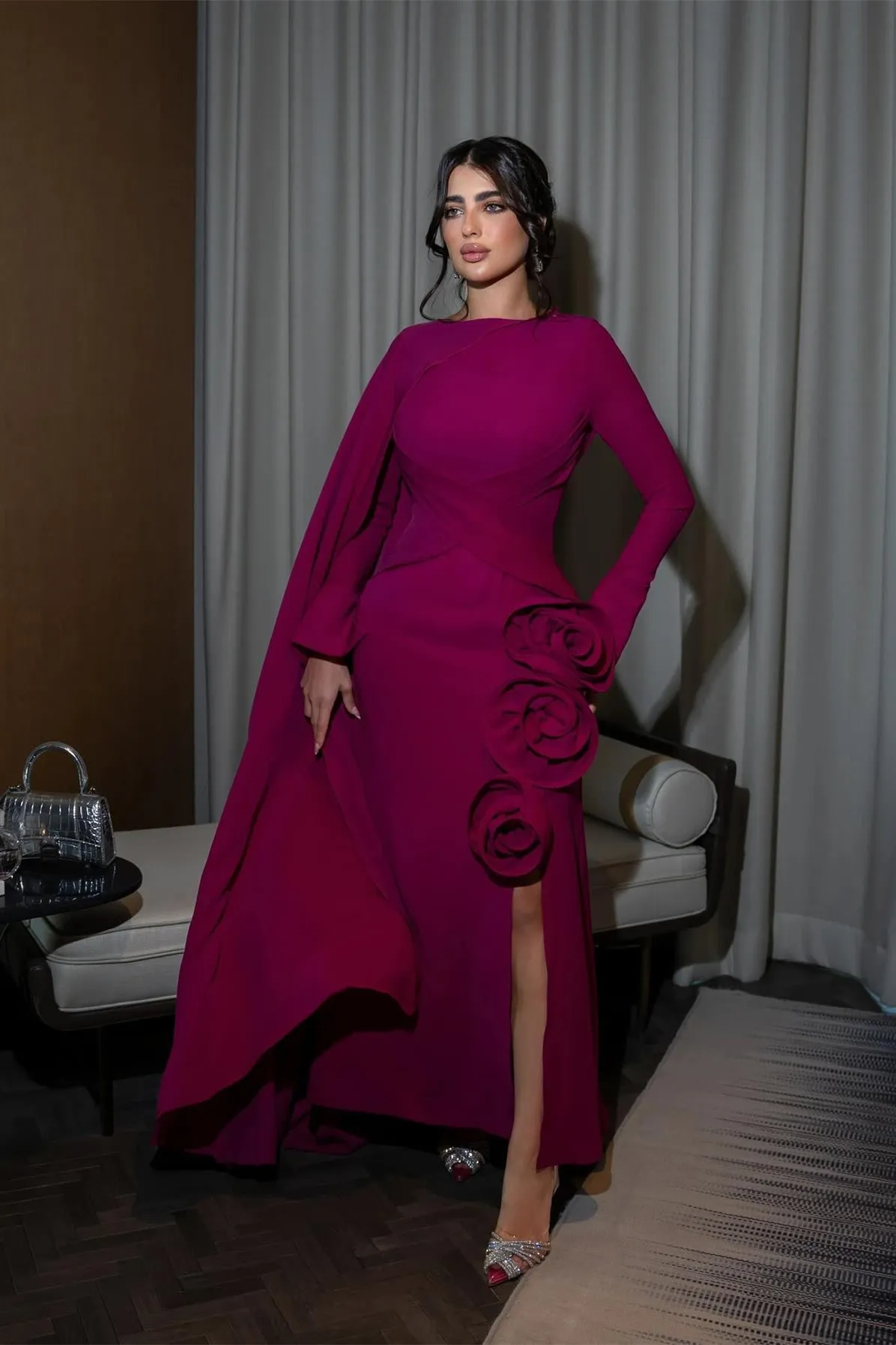 Alevna™ Ayla - Uzun Elbise Ve Çiçekli Pelerin