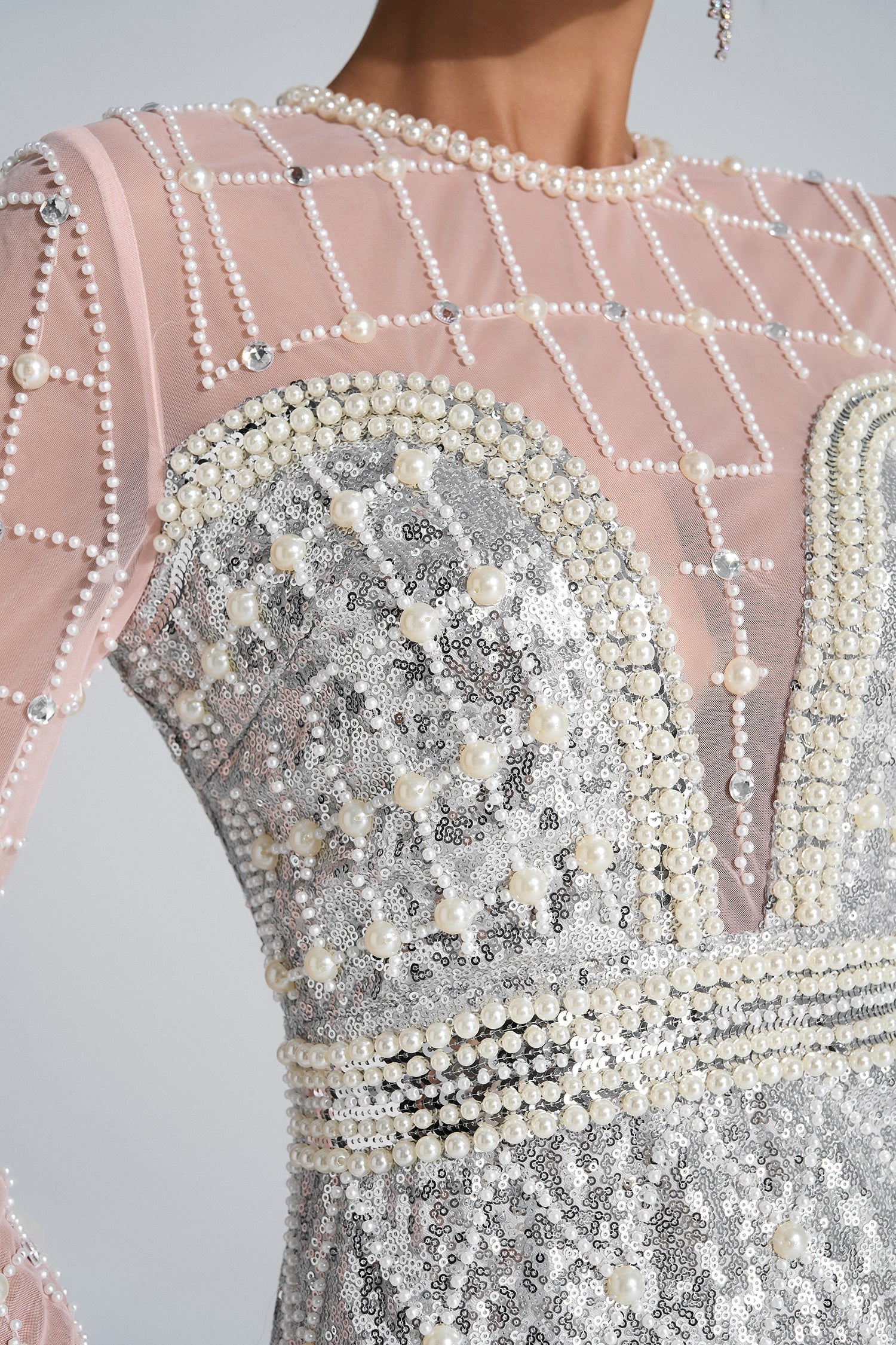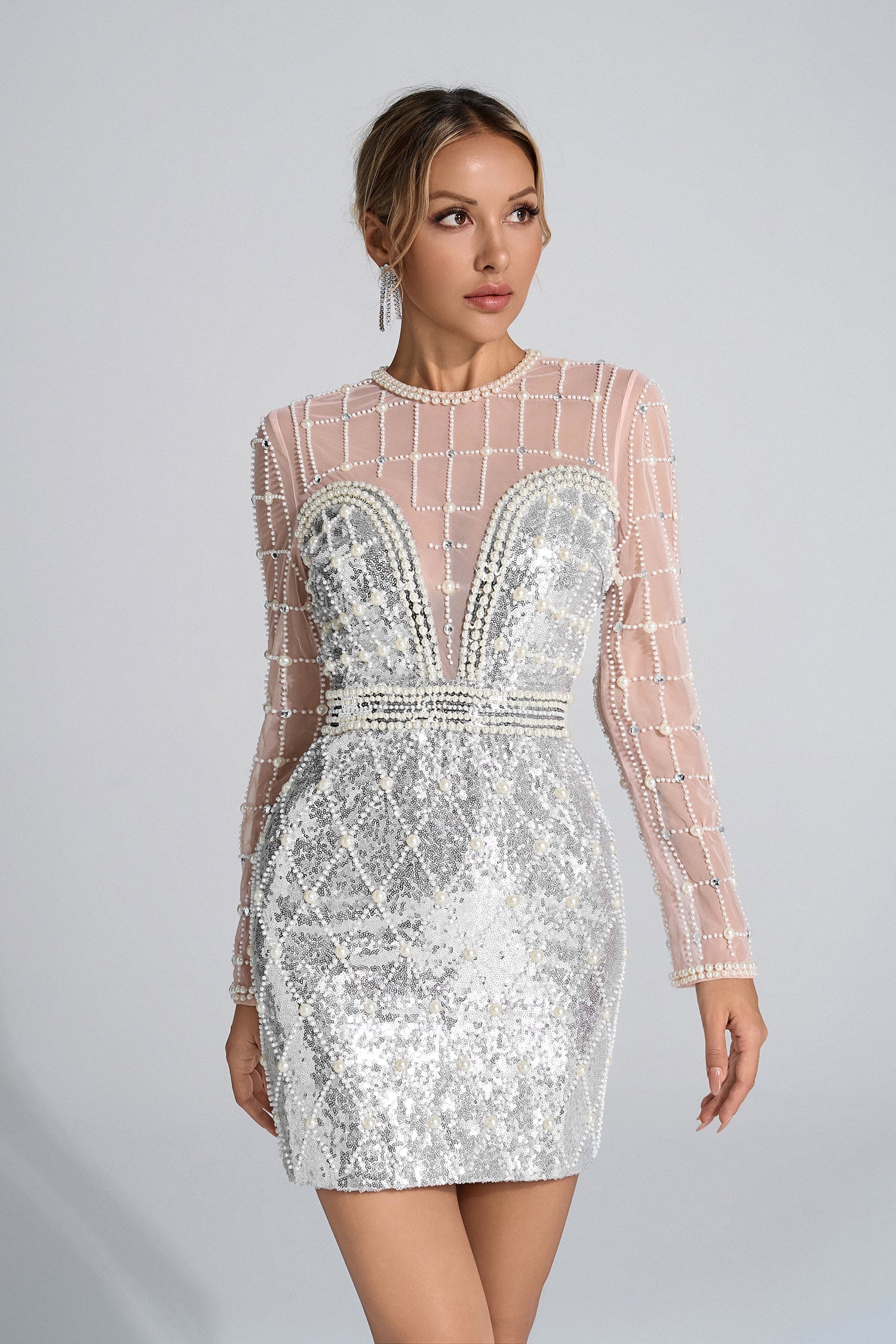 Ayleen Gümüş İnci Işıltılı Mini Etek