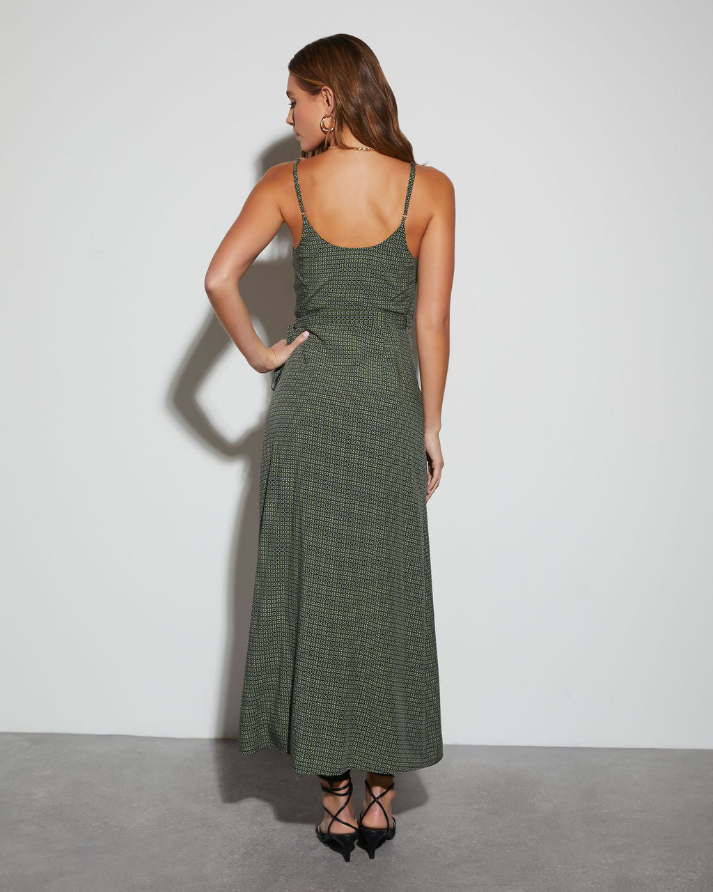 Azura V Yaka Beli Bağlamalı Midi Elbise