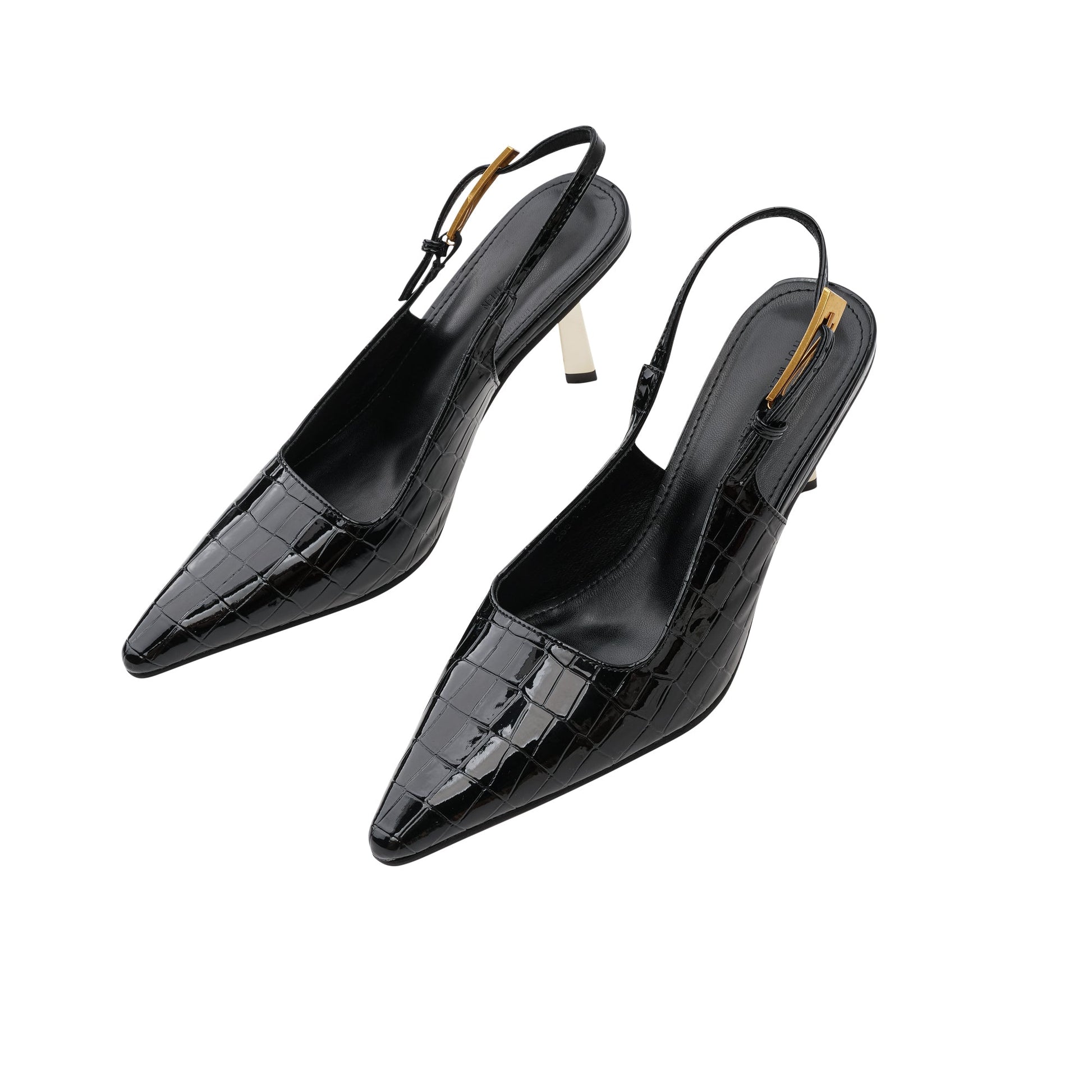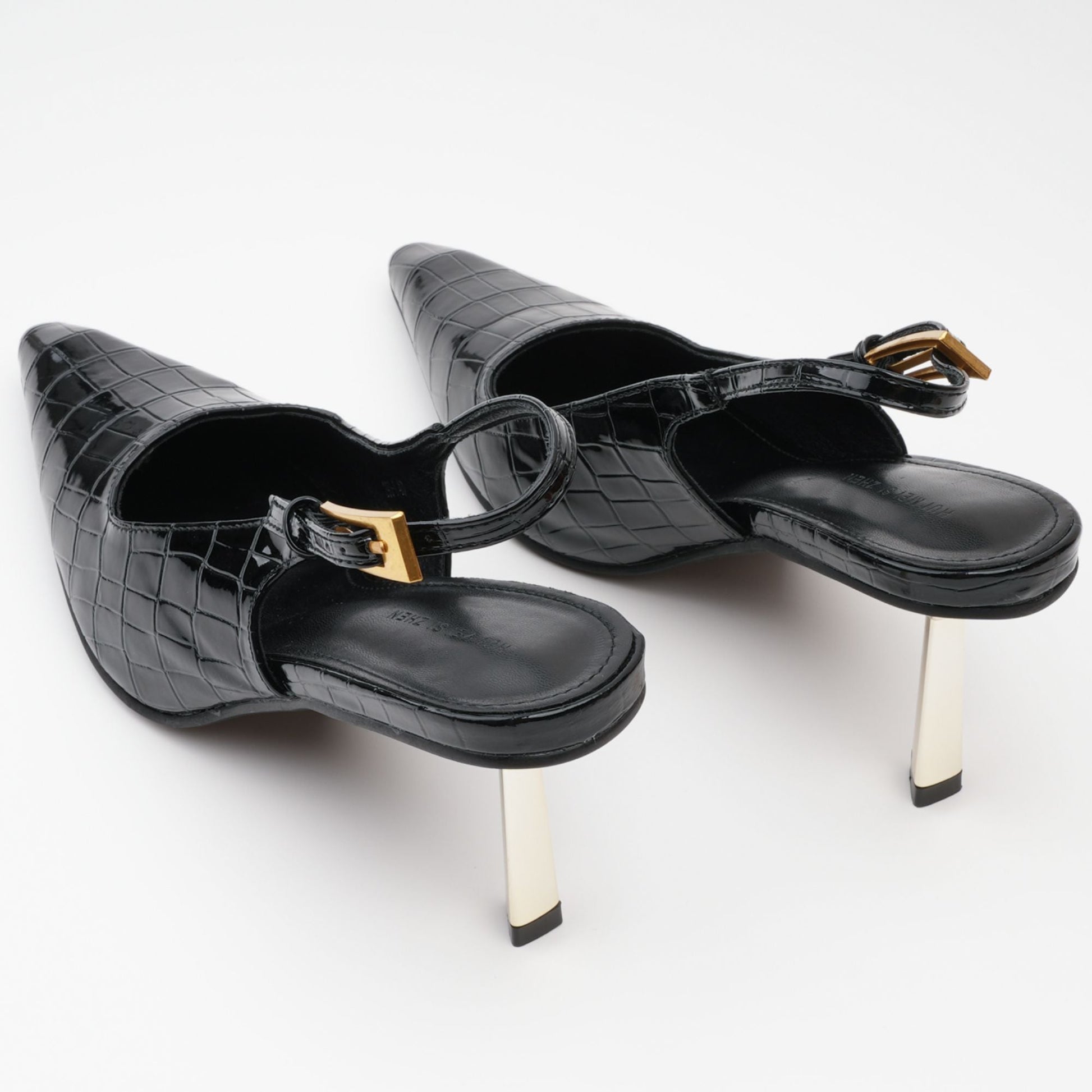 Béatrice Siyah Deri Topuklu Ayakkabılar