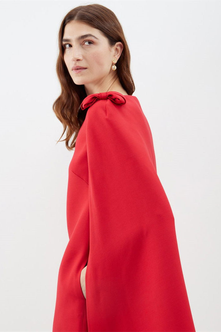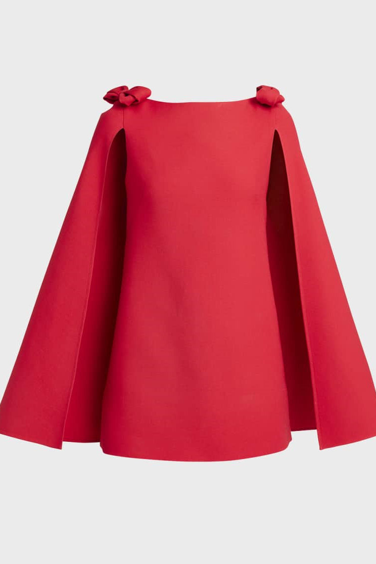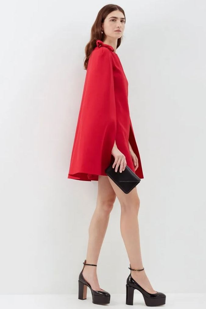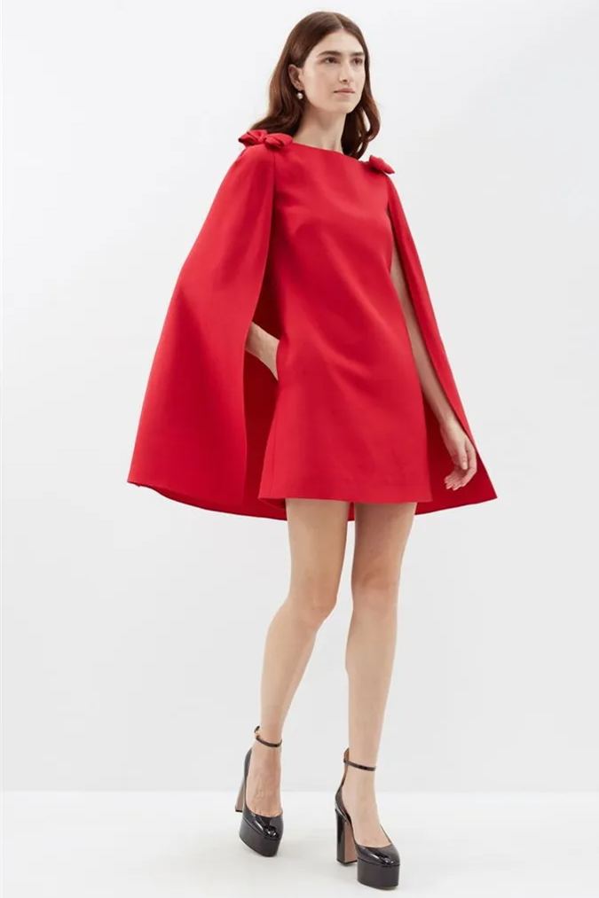 Beril Fiyonklu Omuz Pelerinli Mini Elbise