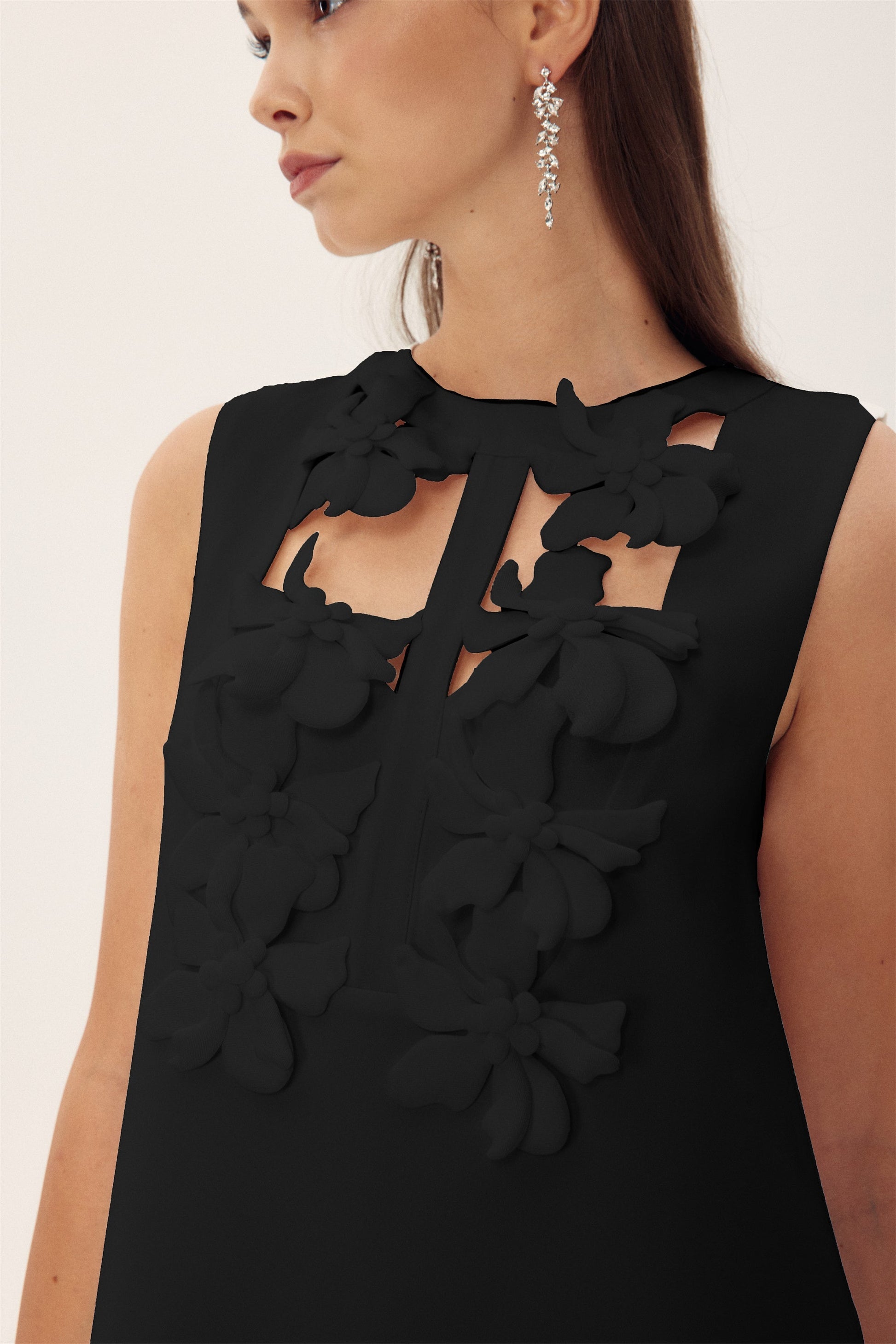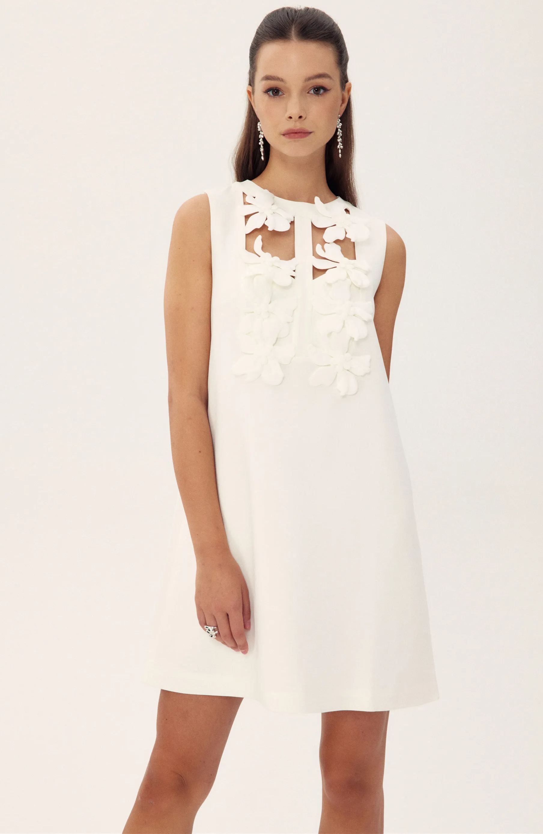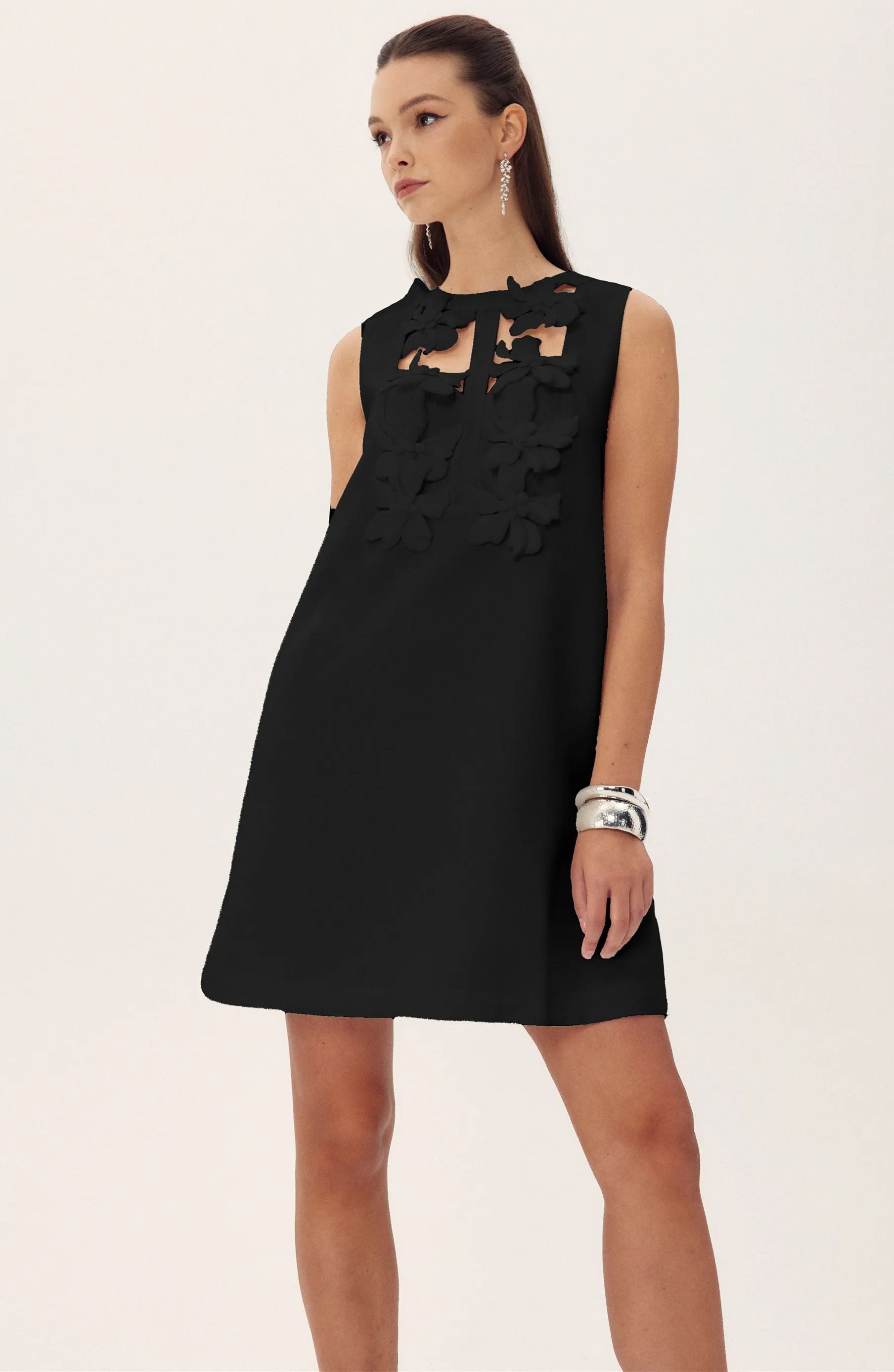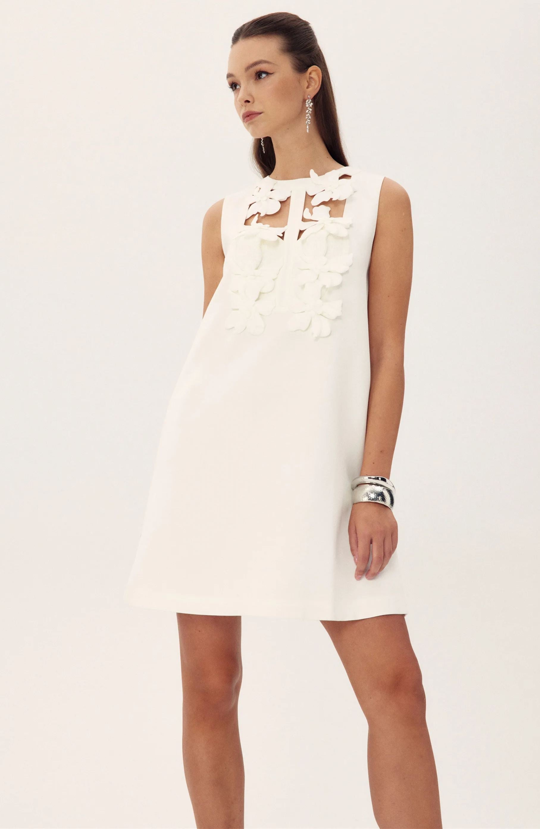 Beverly Çiçek İşlemeli Kesim Mini Elbise
