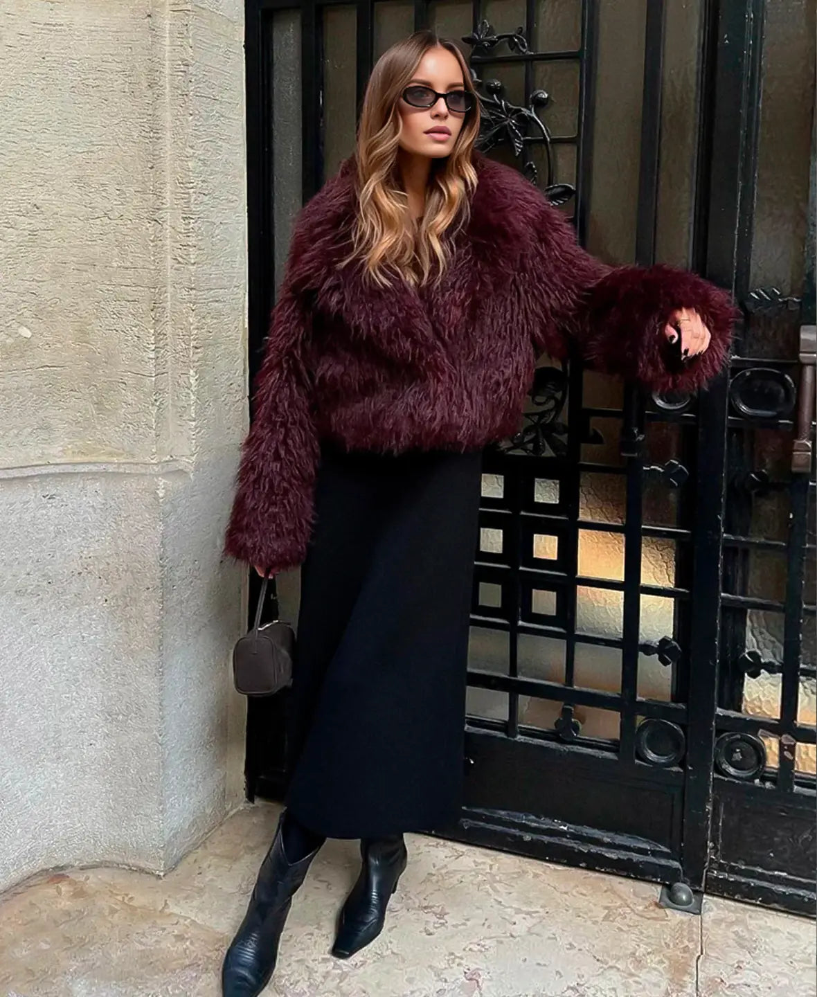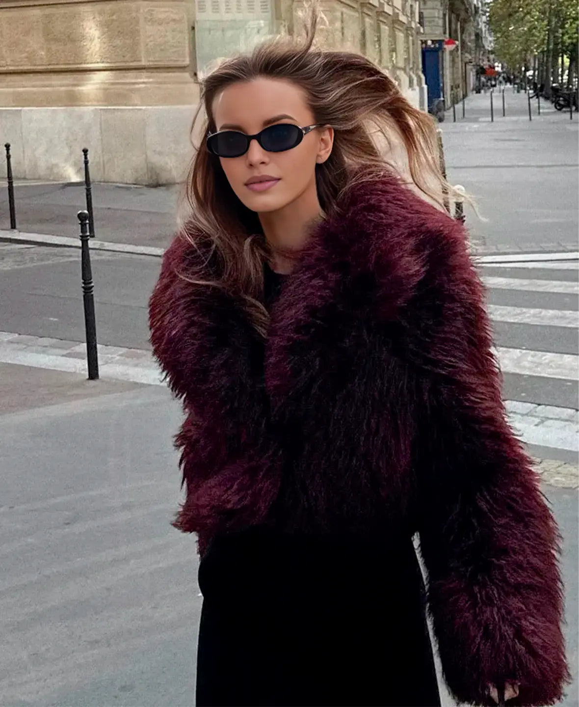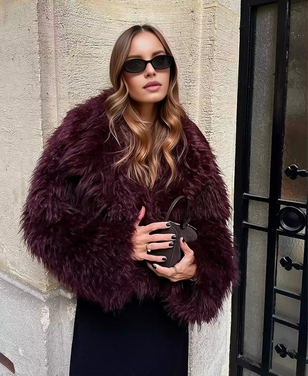 Alevna™ Kadife Güllü Suni Kürk Mont