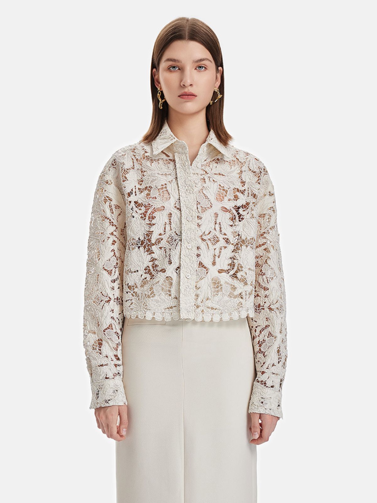 %100 Pamuk Kısa Kesim Dantel Bluz