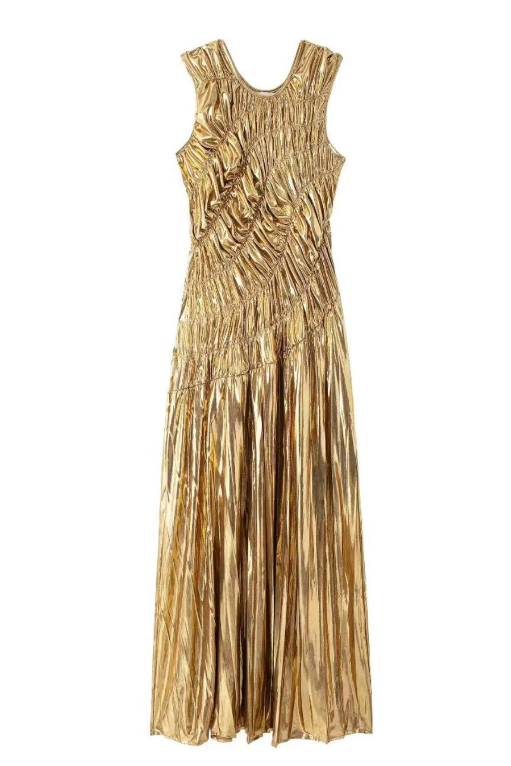 Camila Metalik Piliseli Midi Elbise