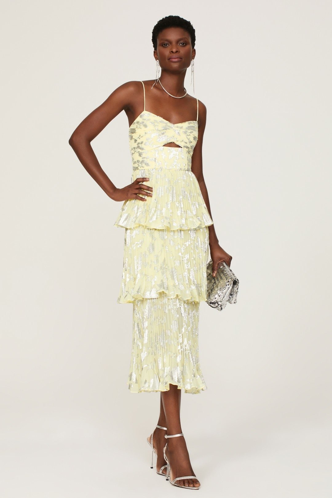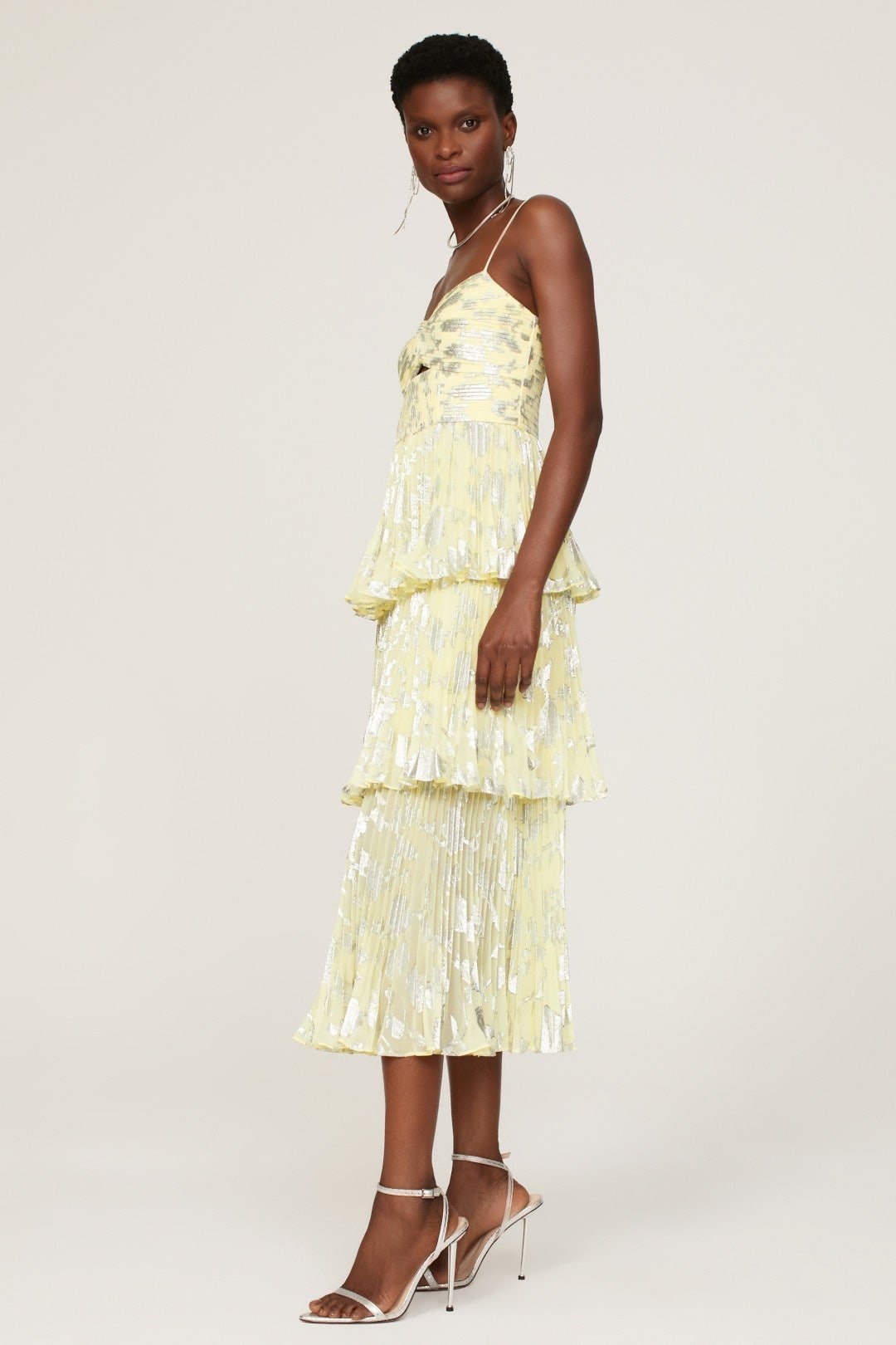 Cara Folyo Baskılı Büzgülü Katlı Midi Elbise