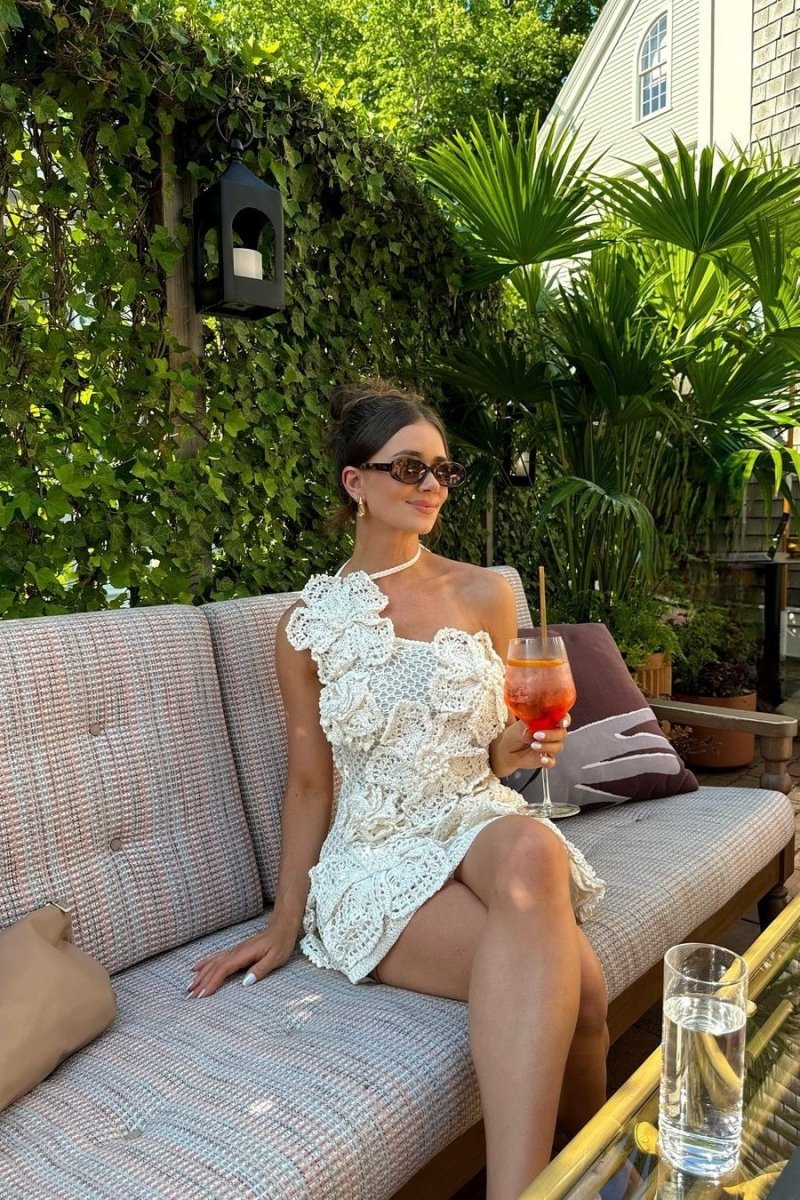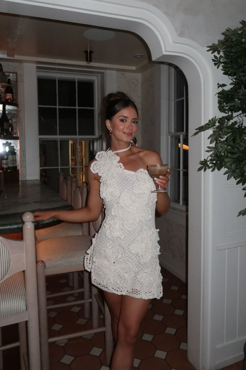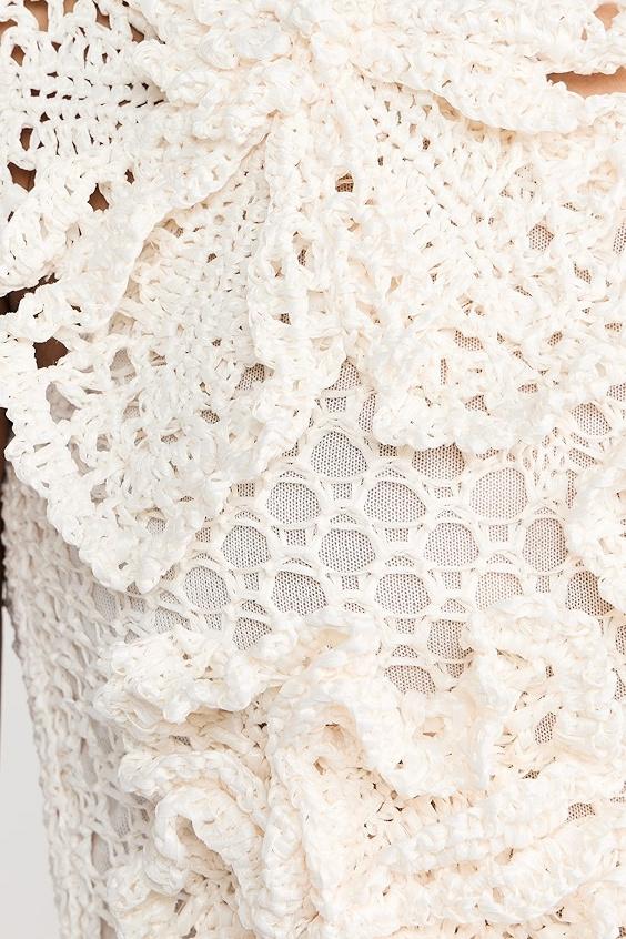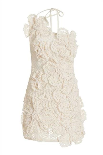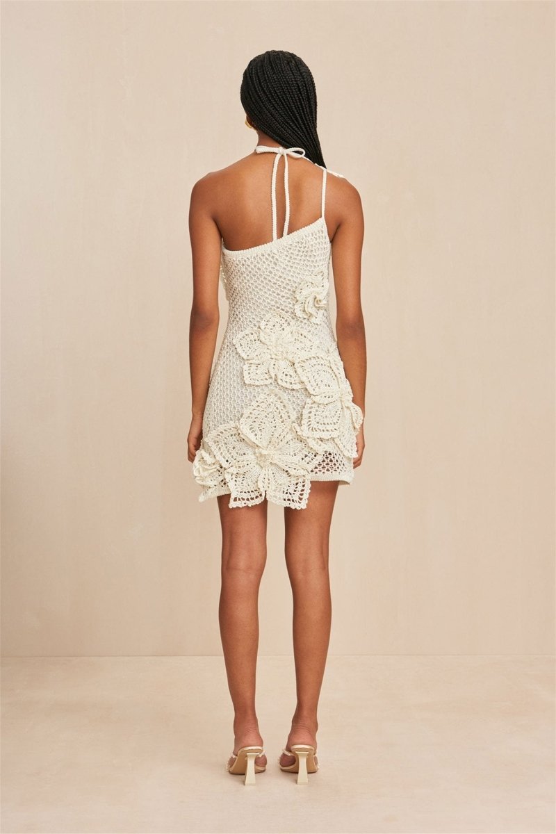Carol Boyundan Bağlamalı Örgü Çiçekli Mini Elbise