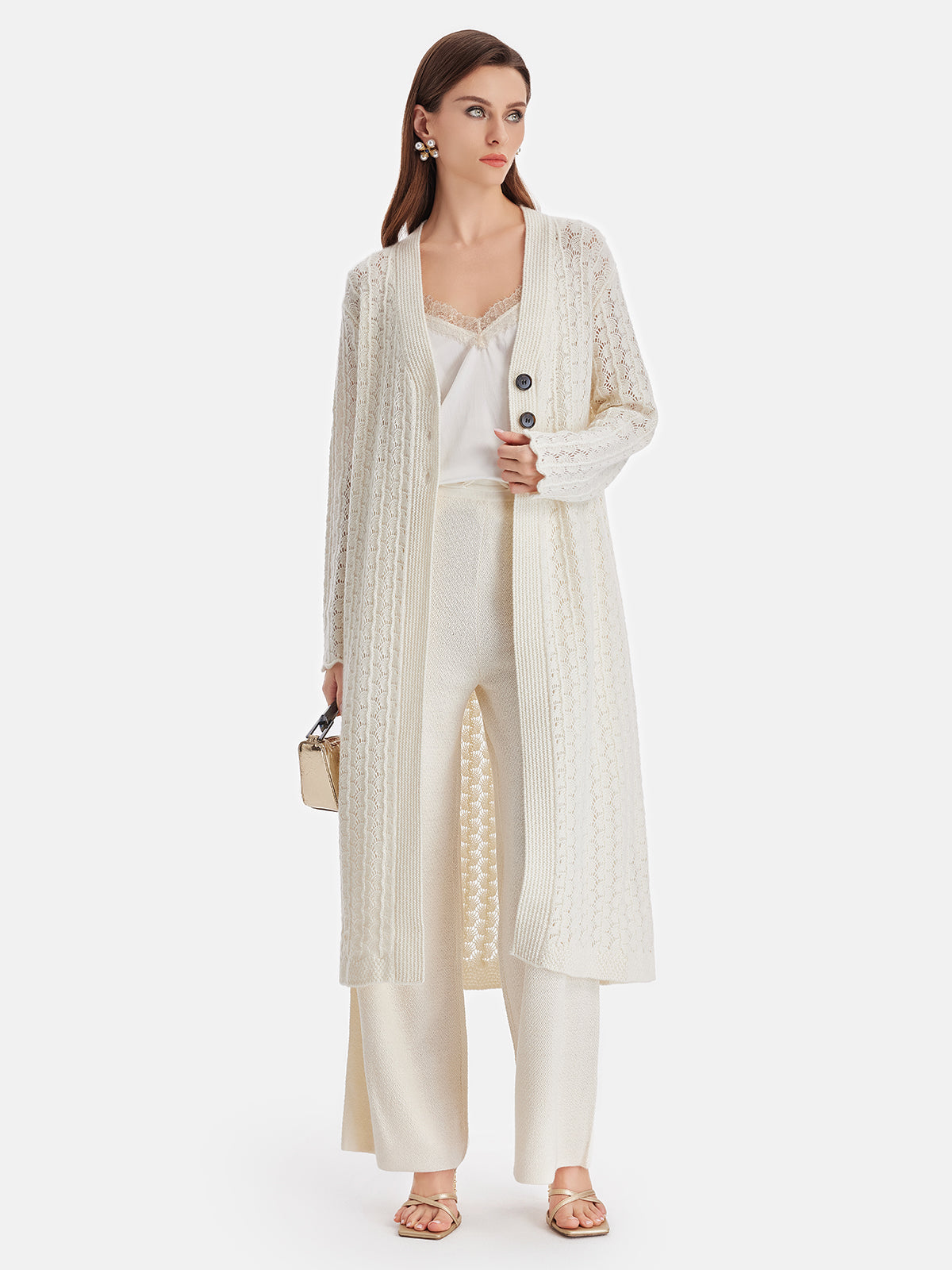 Kaşmir Geometrik Jakarlı Delikli Kaban