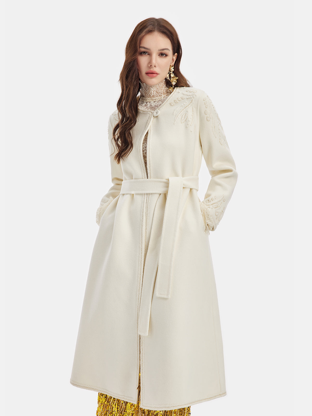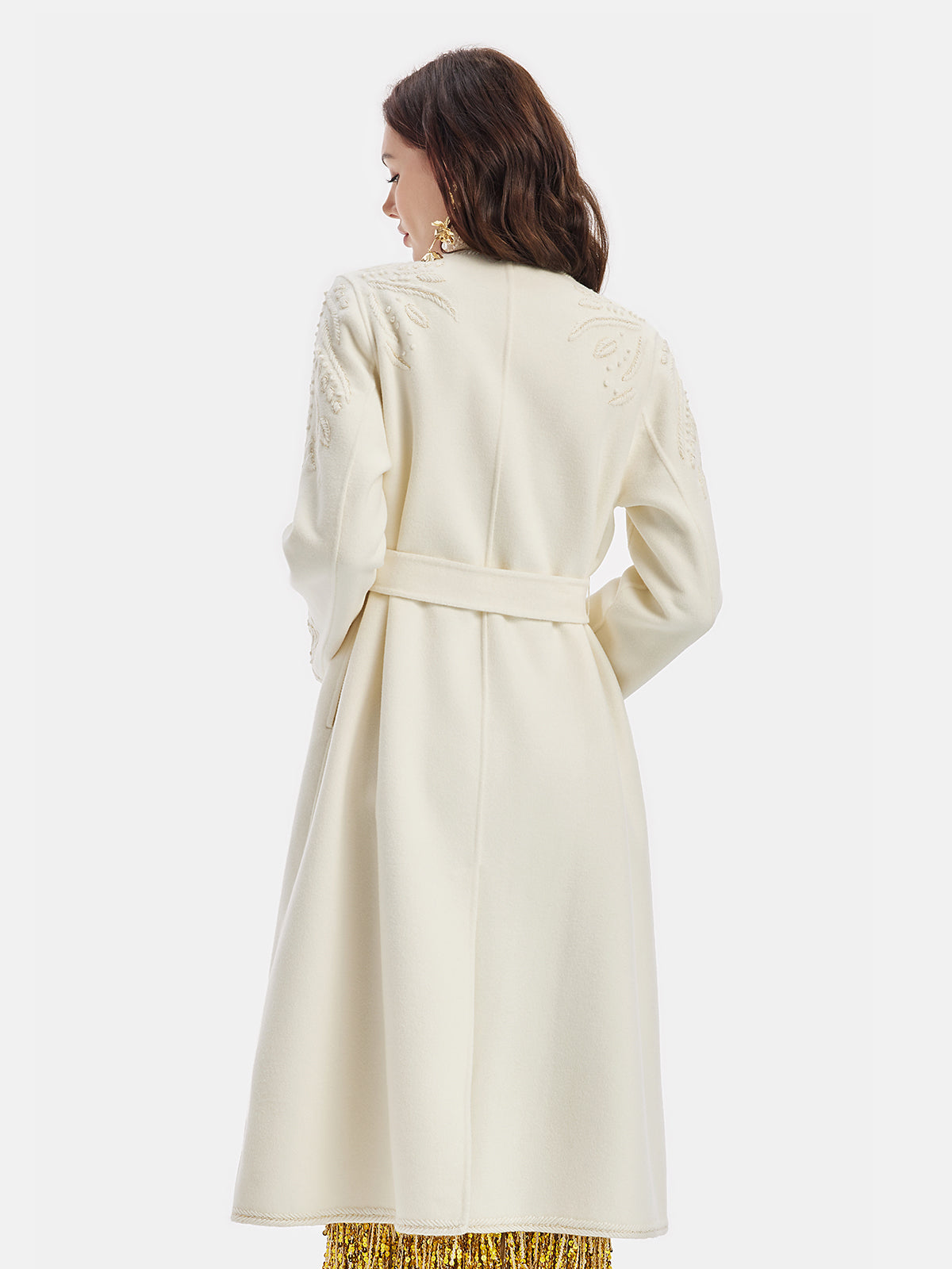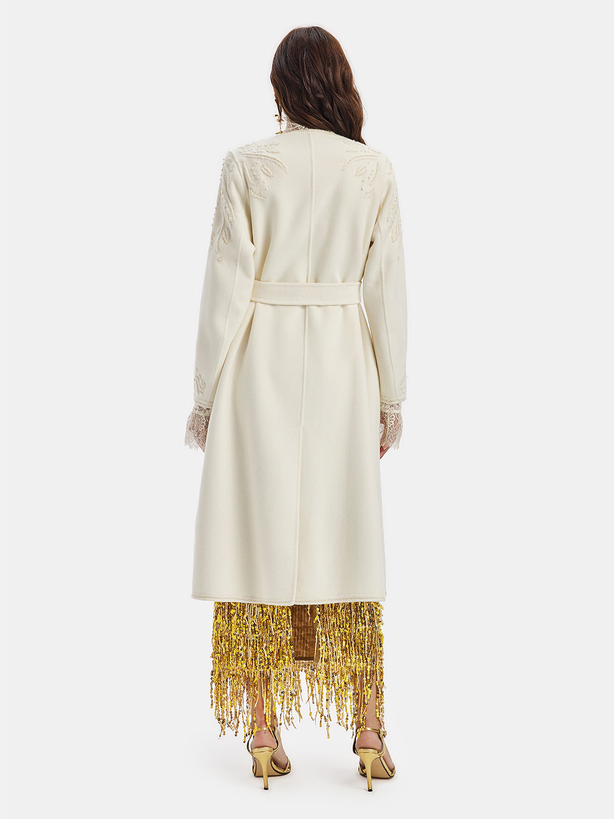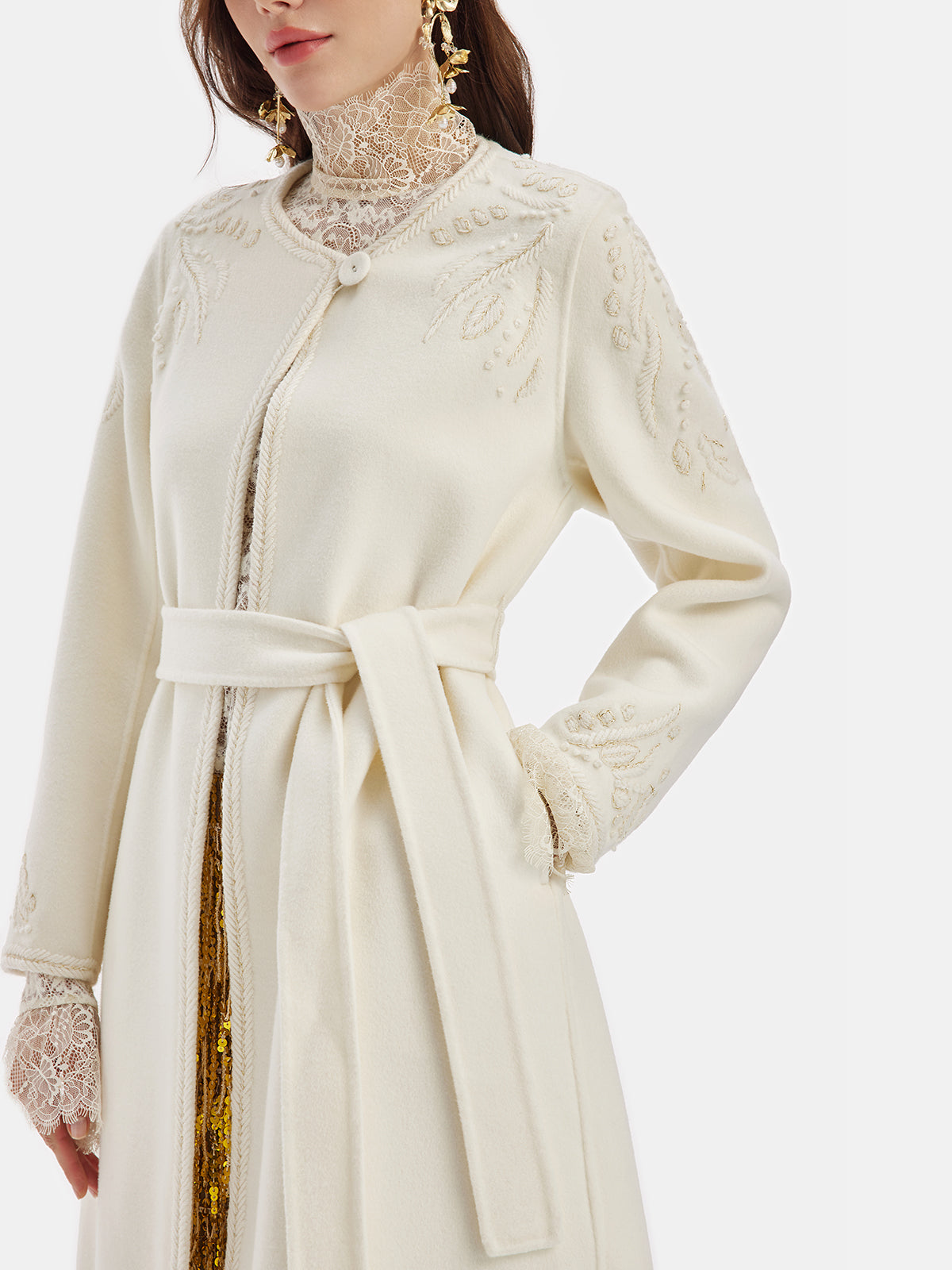 Kaşmir Halat Boncuklu Nakışlı Çift Yüz Kaban