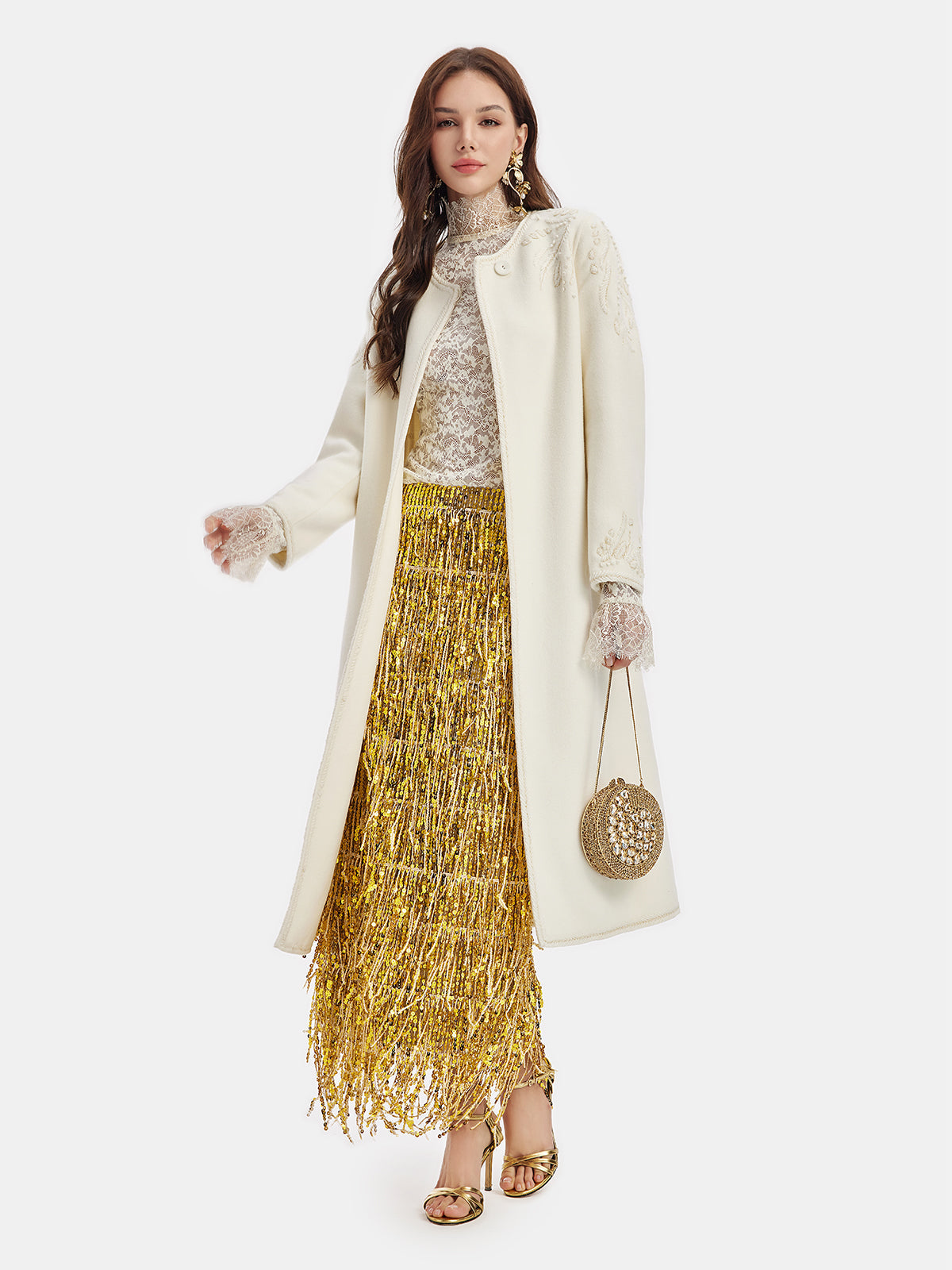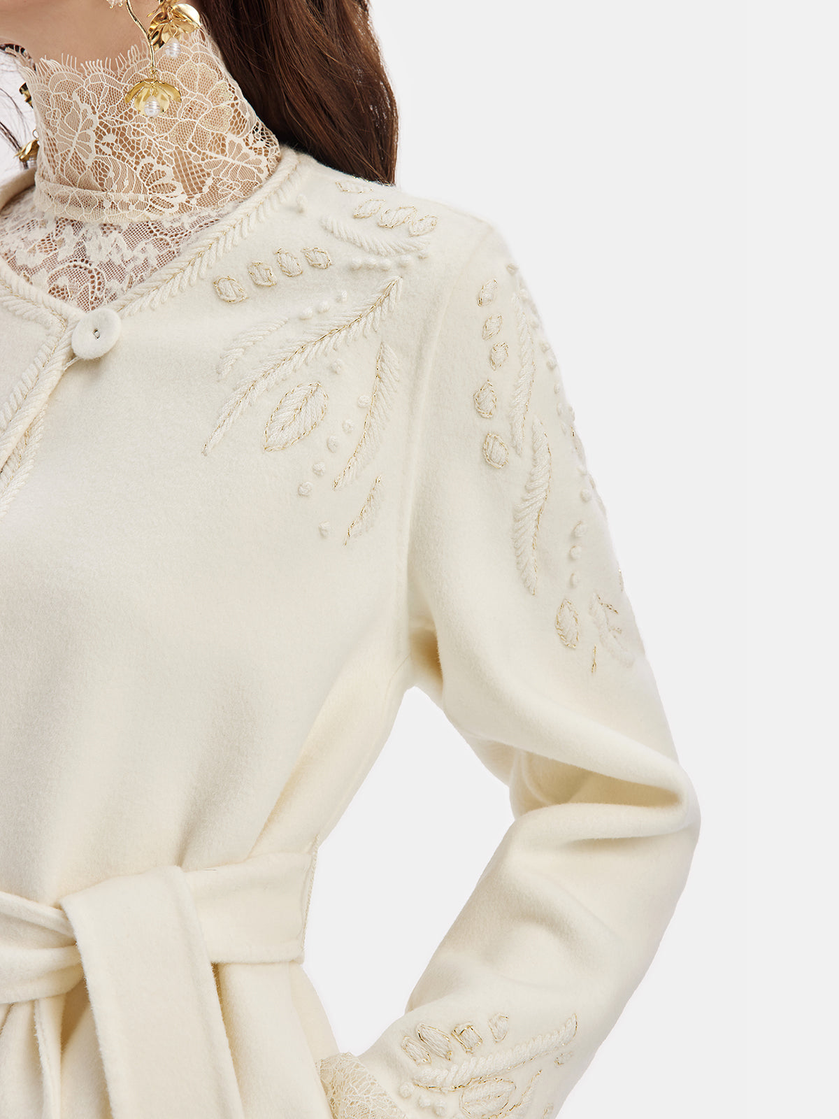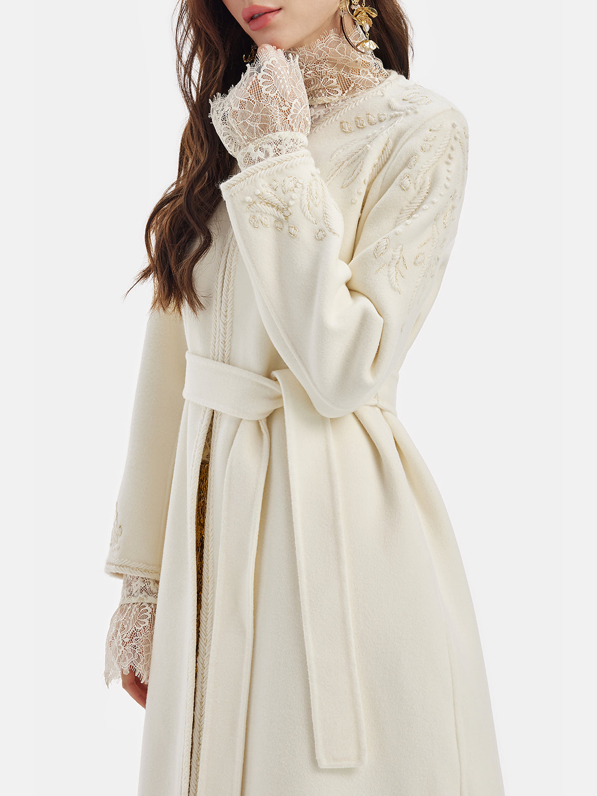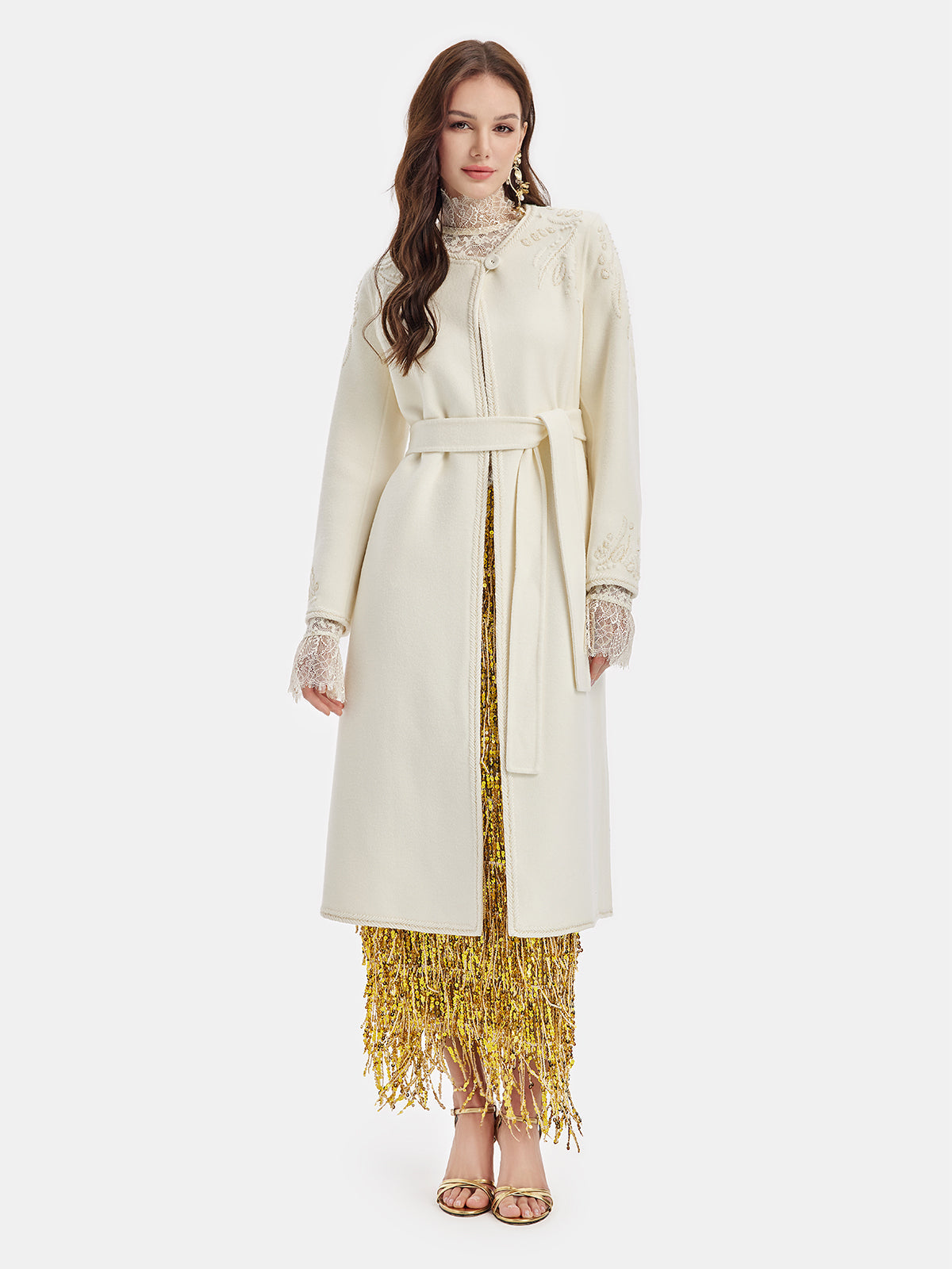 Kaşmir Halat Boncuklu Nakışlı Çift Yüz Kaban