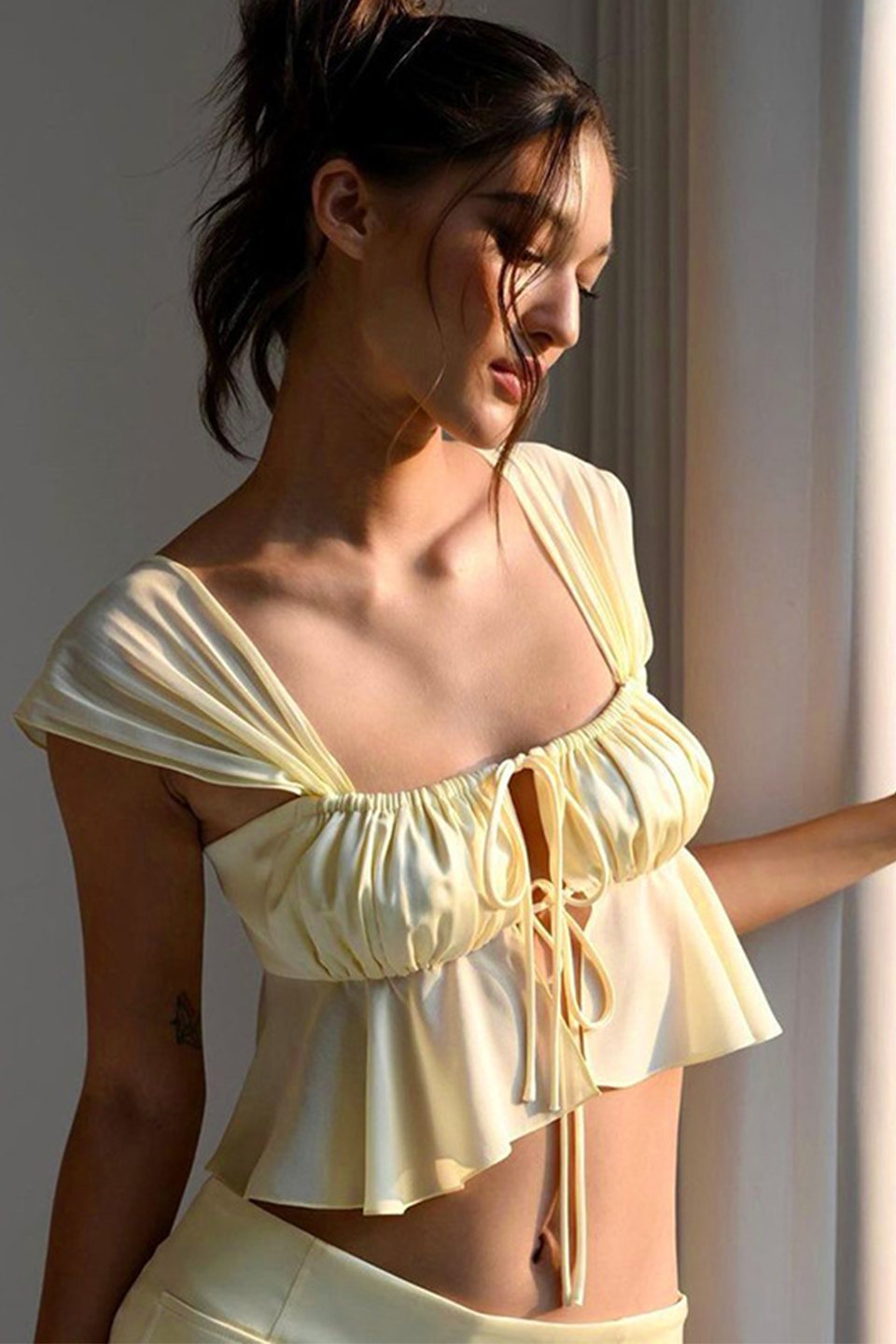 Churi İpli Kısa Saten Kolsuz Bluz