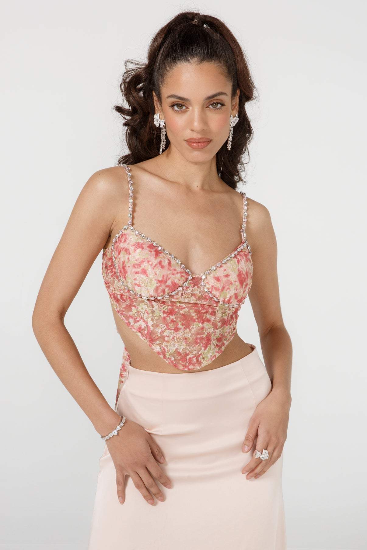 Cici Baskılı Diamante Papyonlu Büstiyer Cami Üst