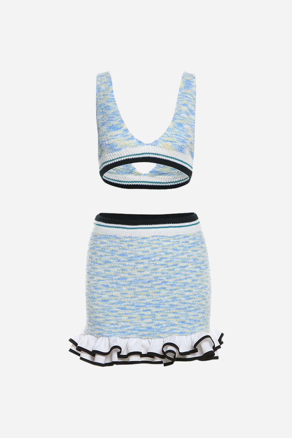 Kontrast Şeritli Fırfırlı Örme Takım