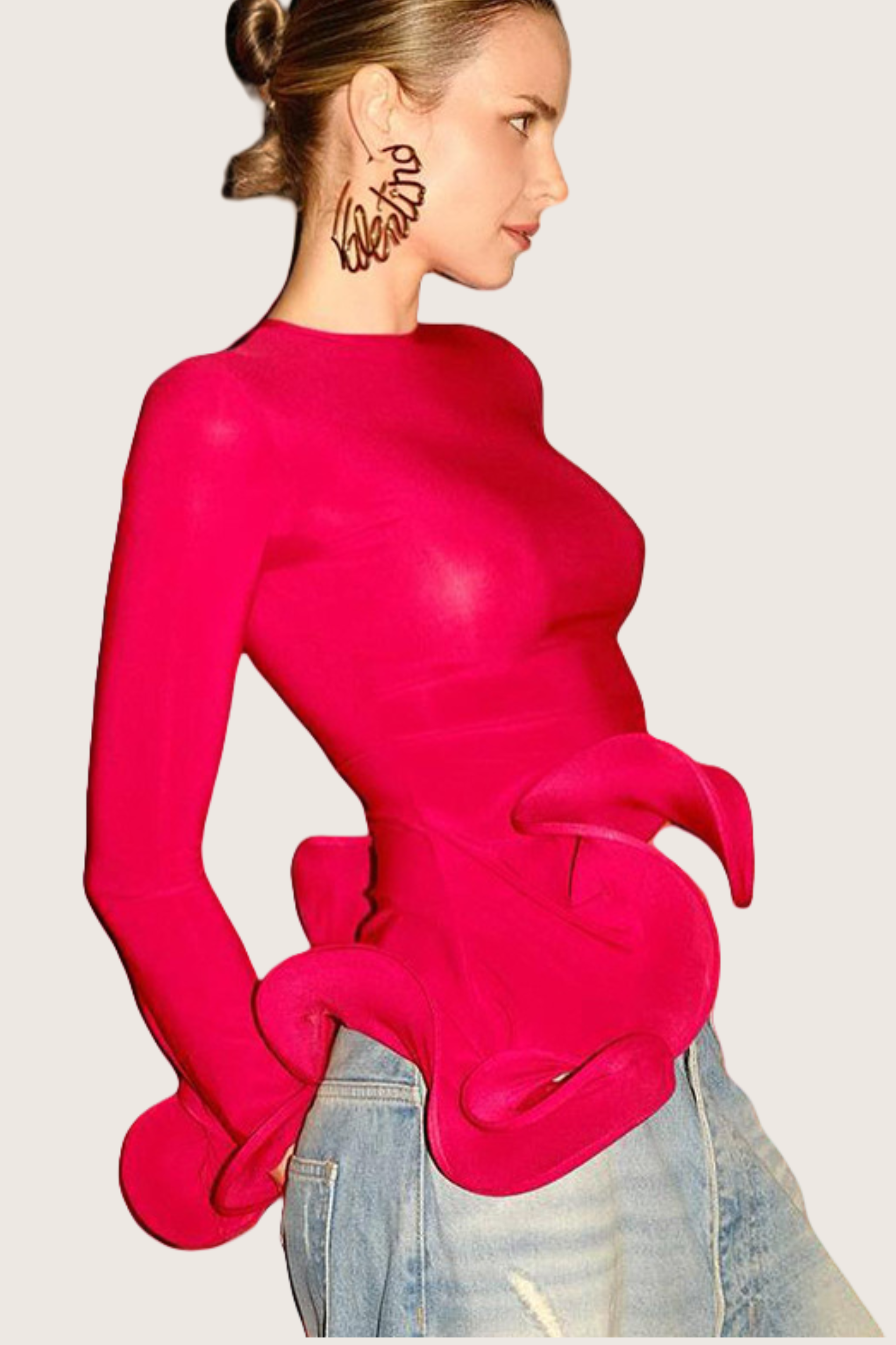 Bisiklet Yaka Asimetrik Kıvrımlı Üst