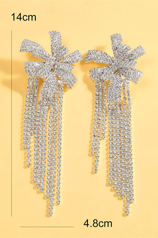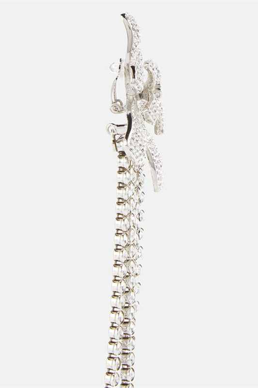 Kristal Çiçek Saçak Klipsli Küpeler