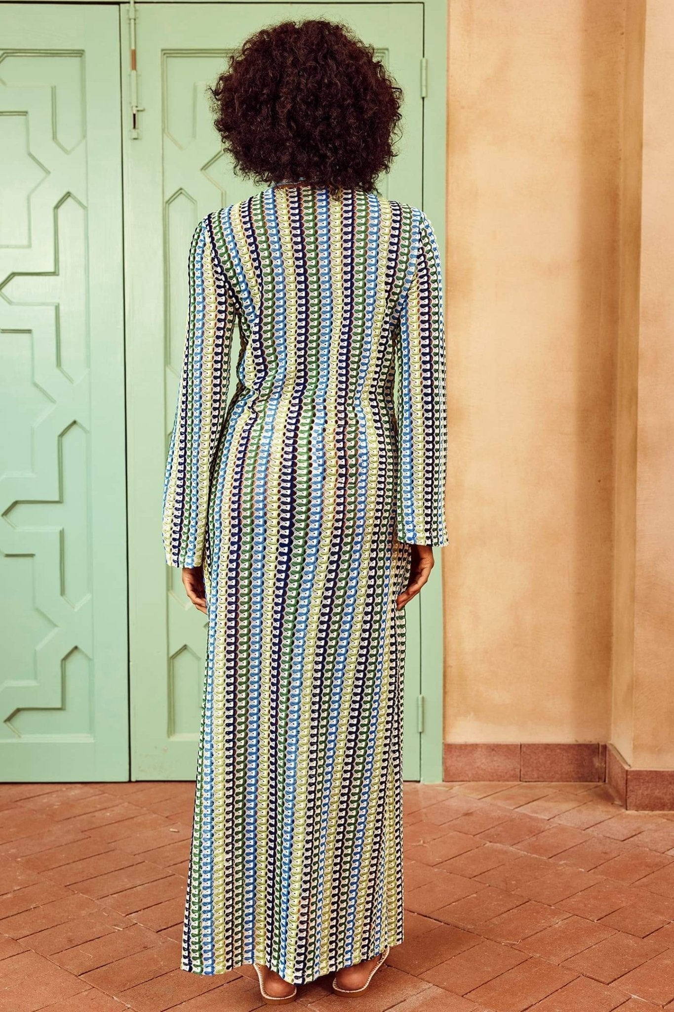 Şafak V Yaka Yırtmaçlı Tığ İşi Maxi Elbise