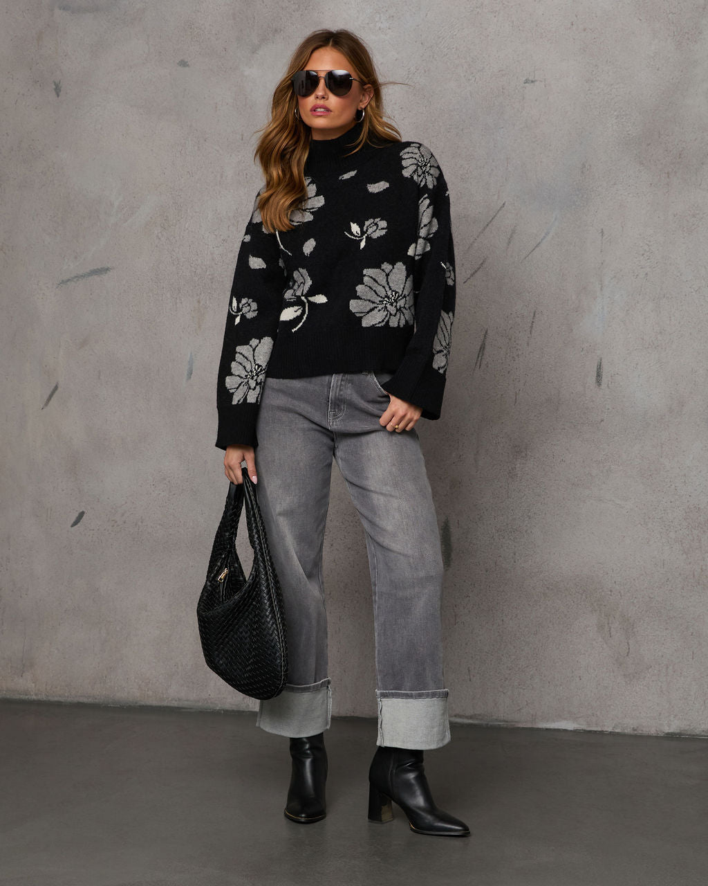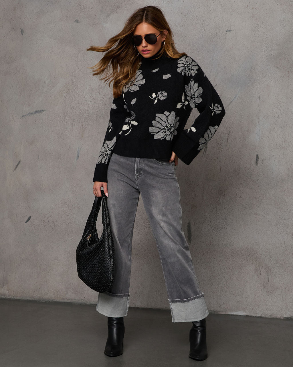 Daylen Çiçekli Balıkçı Yaka Kazak