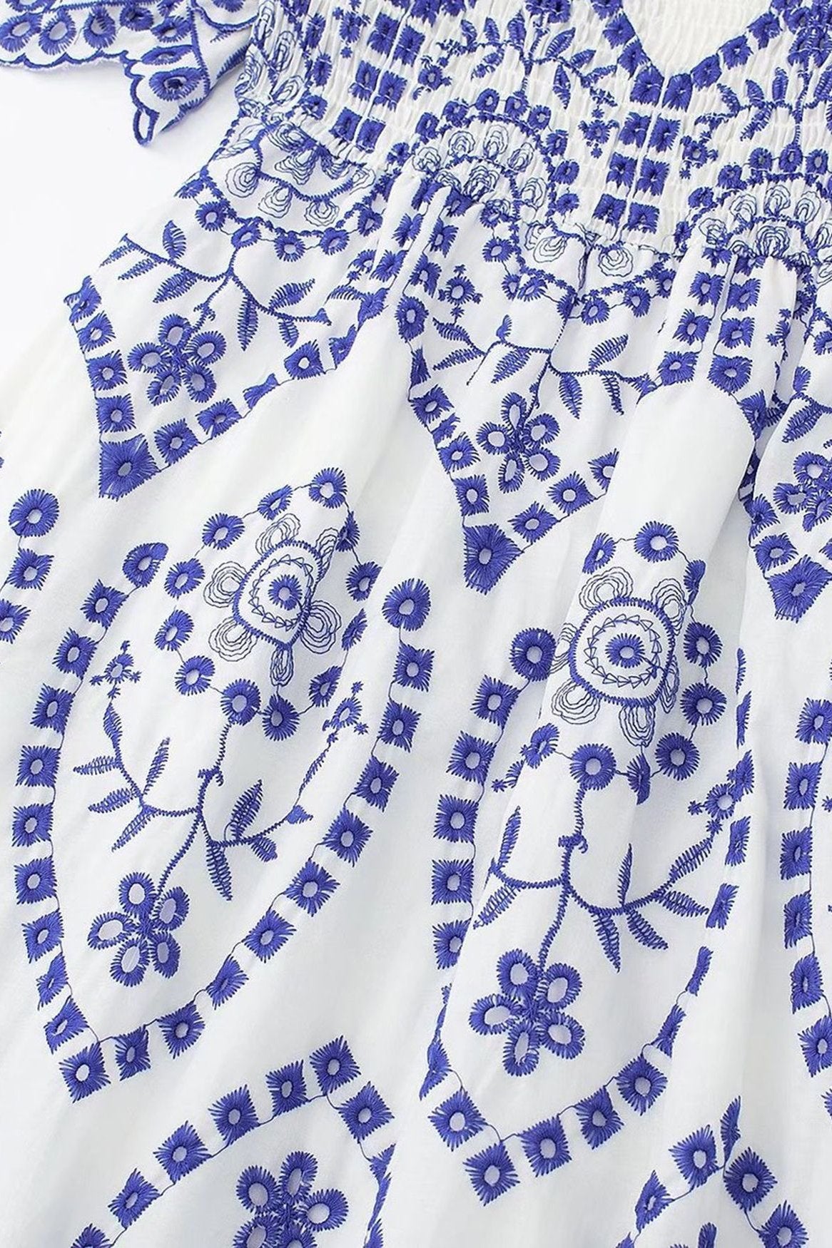 Della Nakış Dantel Fırfır Büzgülü Midi Elbise