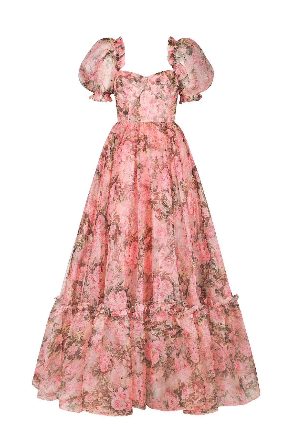 Dolly Baskılı Kalp Fırfırlı Maxi Elbise