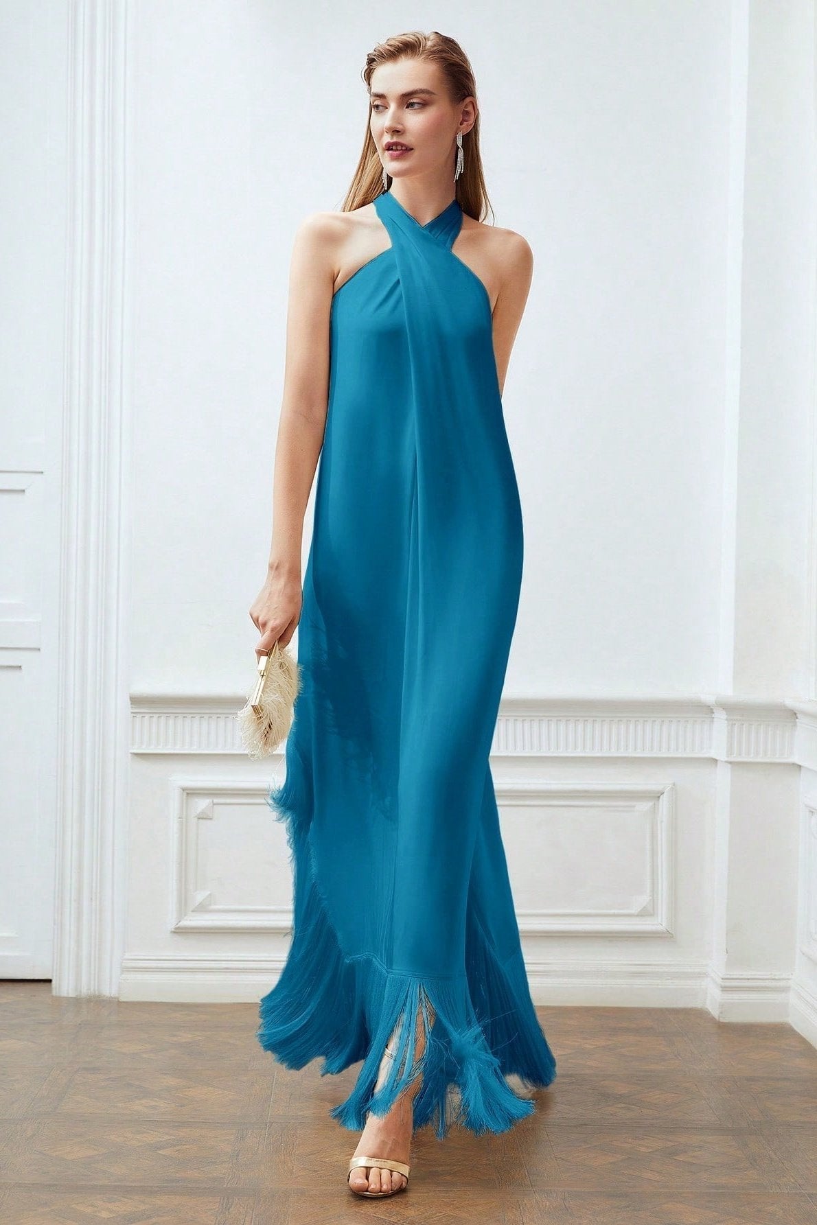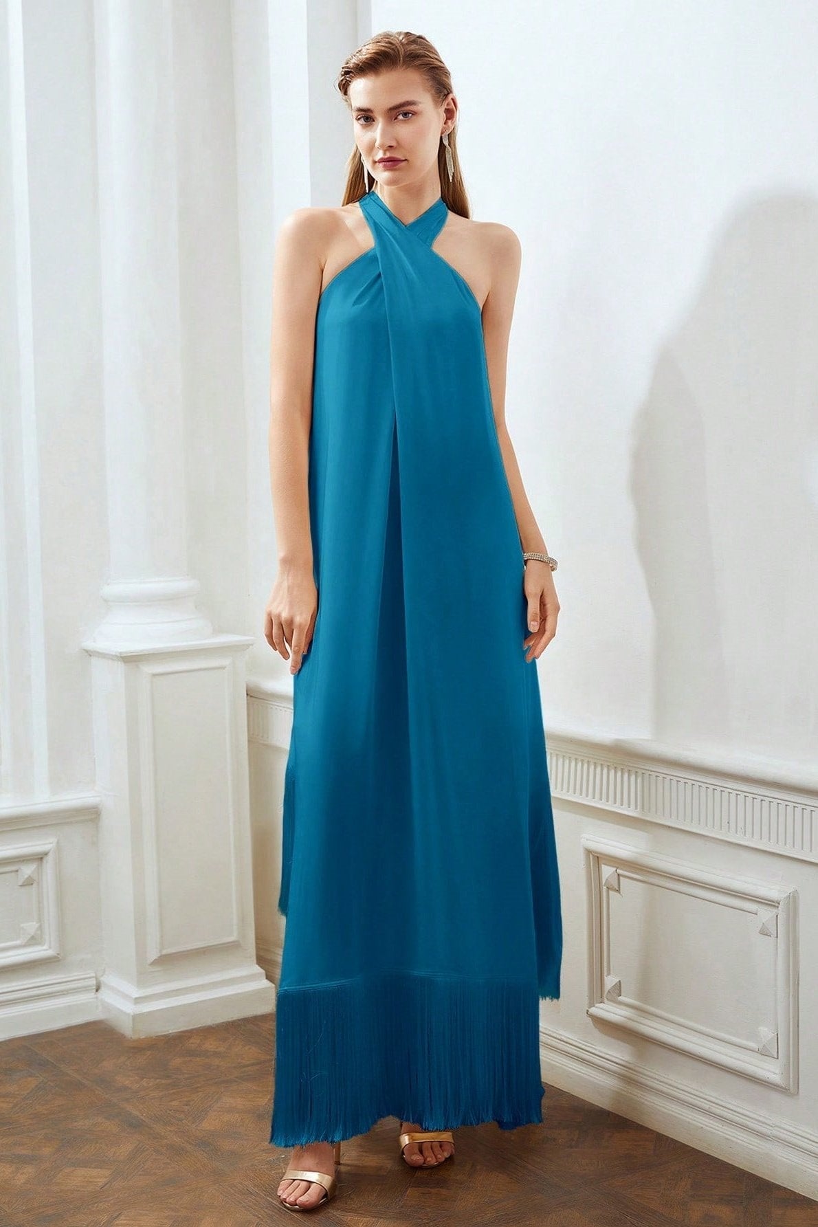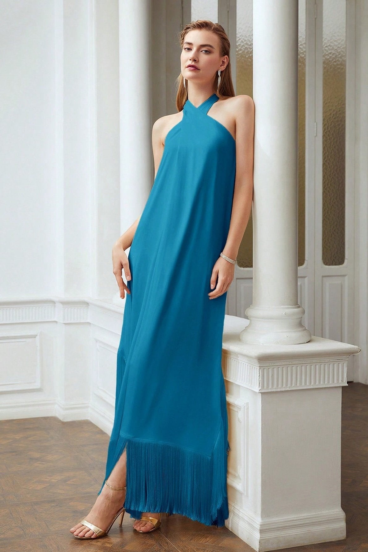 Dolores Çapraz Boyundan Bağlamalı Püsküllü Maxi Elbise