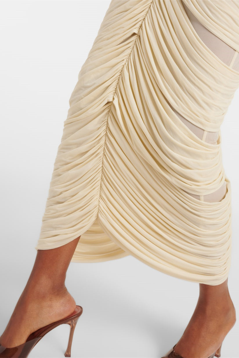 Elbiselerimiz, çağdaş tasarım unsurlarıyla klasik güzellik kavramını yeniden tanımlıyor. Zarif, vücuda oturan siluet, zarif bir görünüm yaratarak sizi gecenin parlayan yıldızı yapar. İster bir galaya, ister bir düğüne veya resmi bir akşam yemeğine katılın, bu elbise zahmetsizce göz alıcı bir görünüm için tercihiniz olacak.