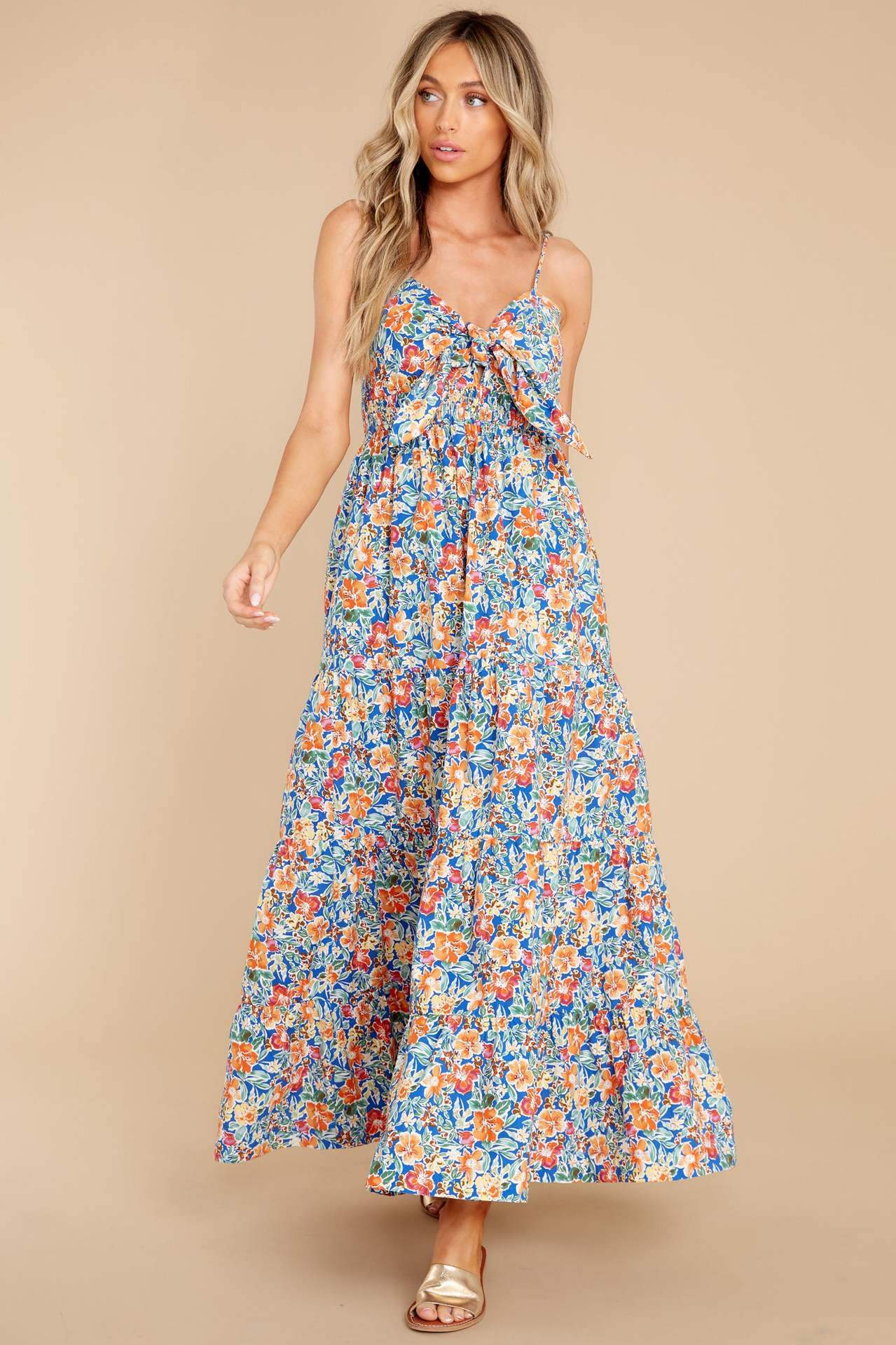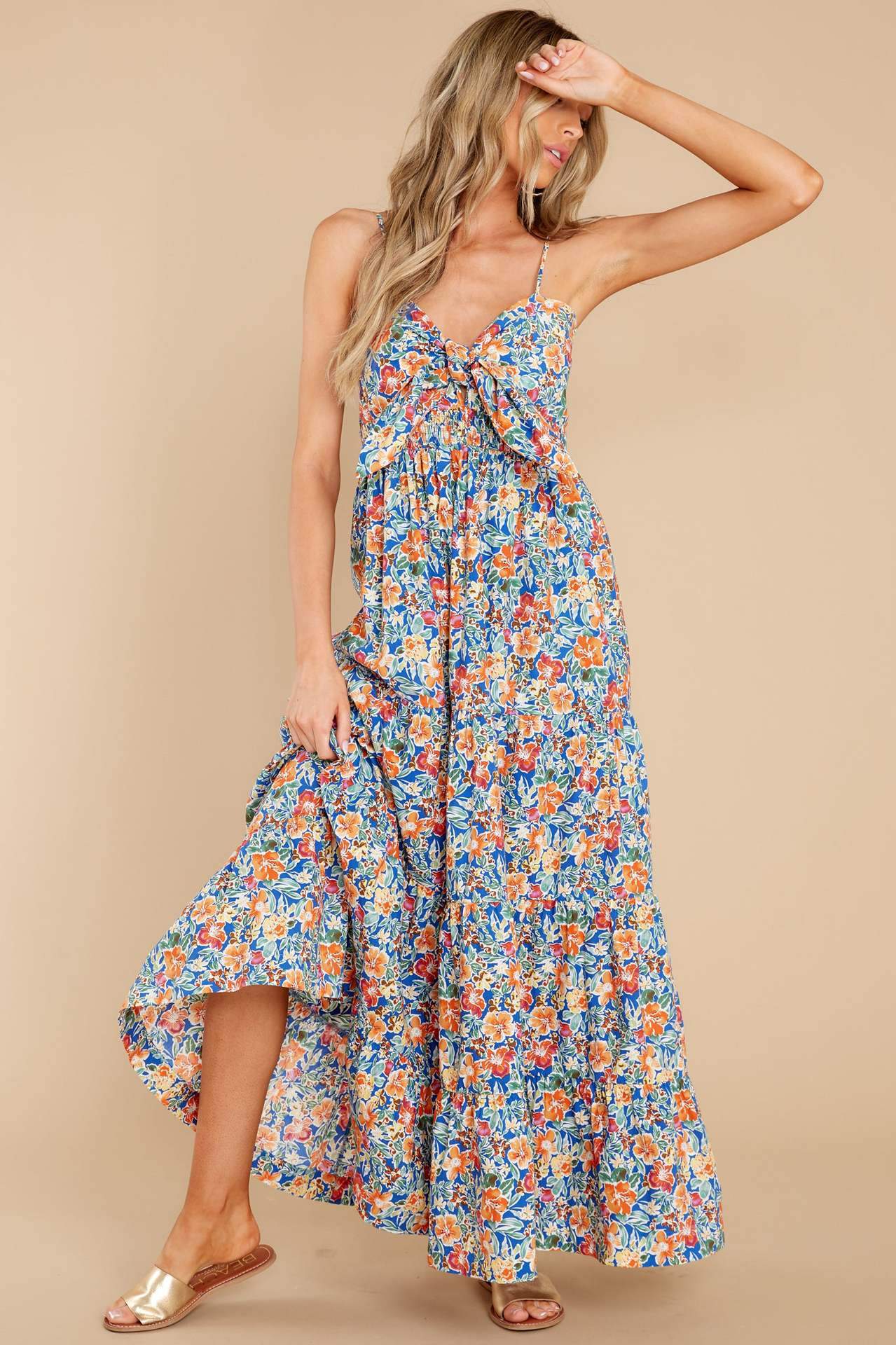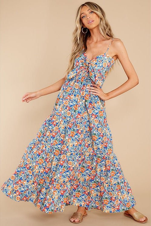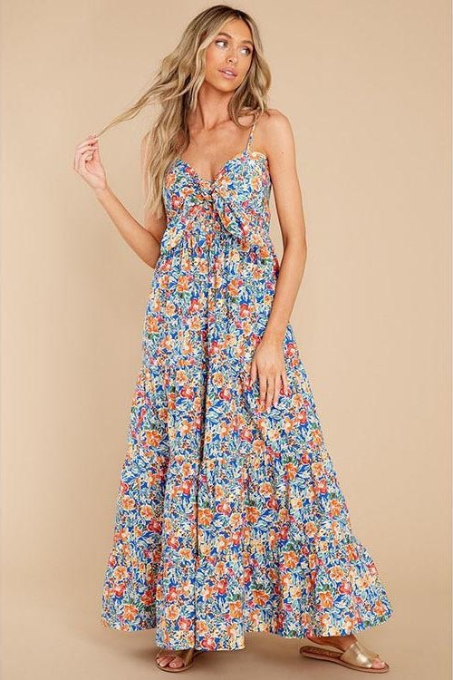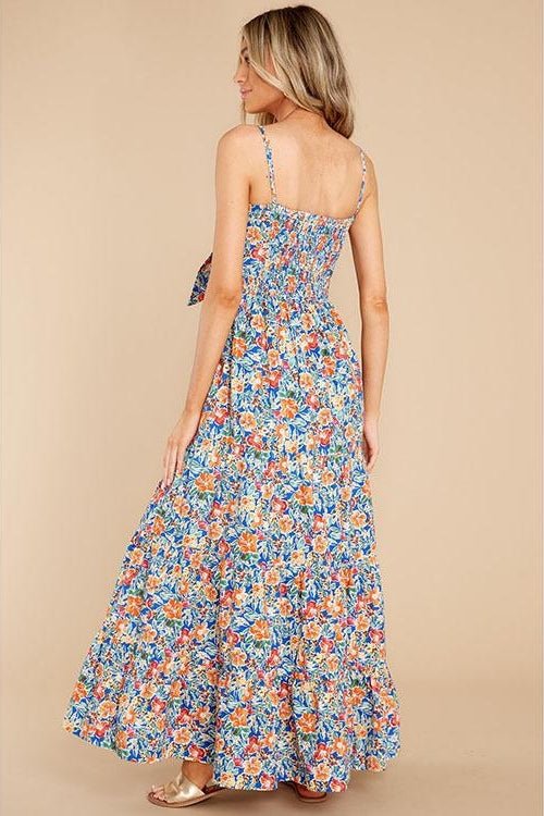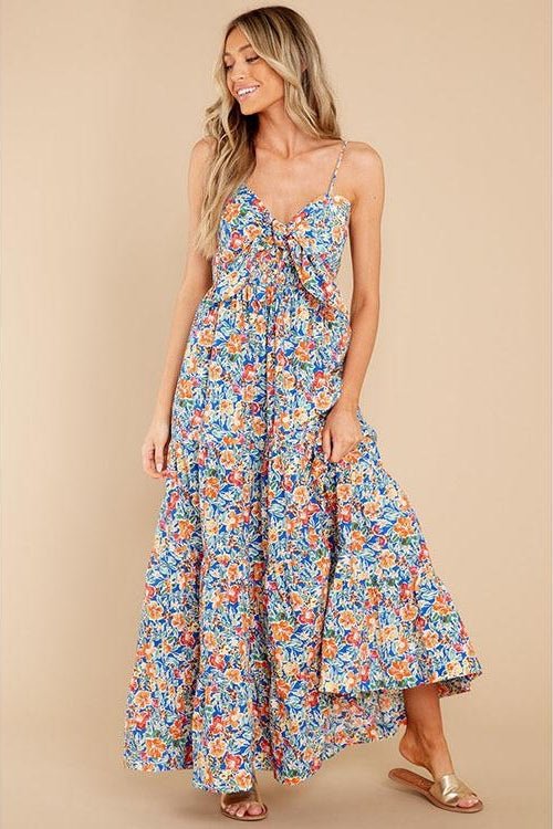 Doris Baskılı Düğümlü Büzgülü Uzun Elbise